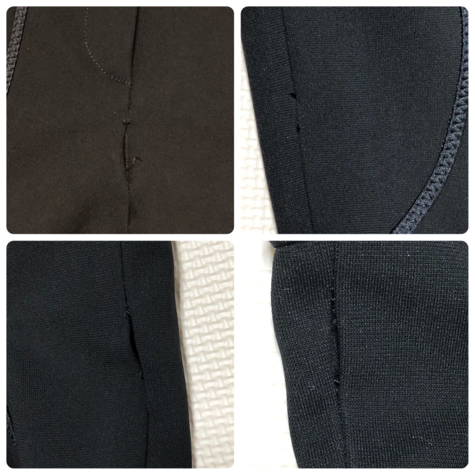 ファスナー下縫製ほつれ、左脚腿内側わずかに糸飛び出し、両足ひざ内側縫製ほつれ※写真5