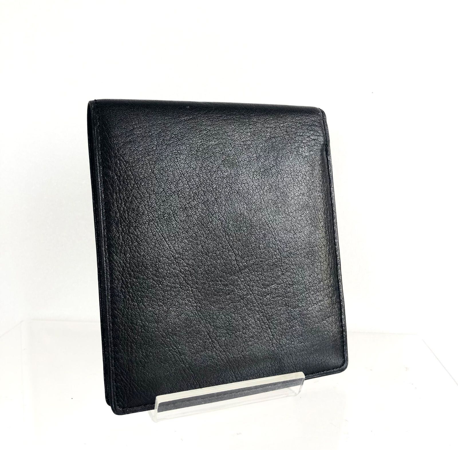 ■外観良品■Yves saint Laurent イヴサンローラン YSL型押し 二つ折り財布 ミニ財布 レザー ブラック ゴールド金具 メンズ ユニセックス
