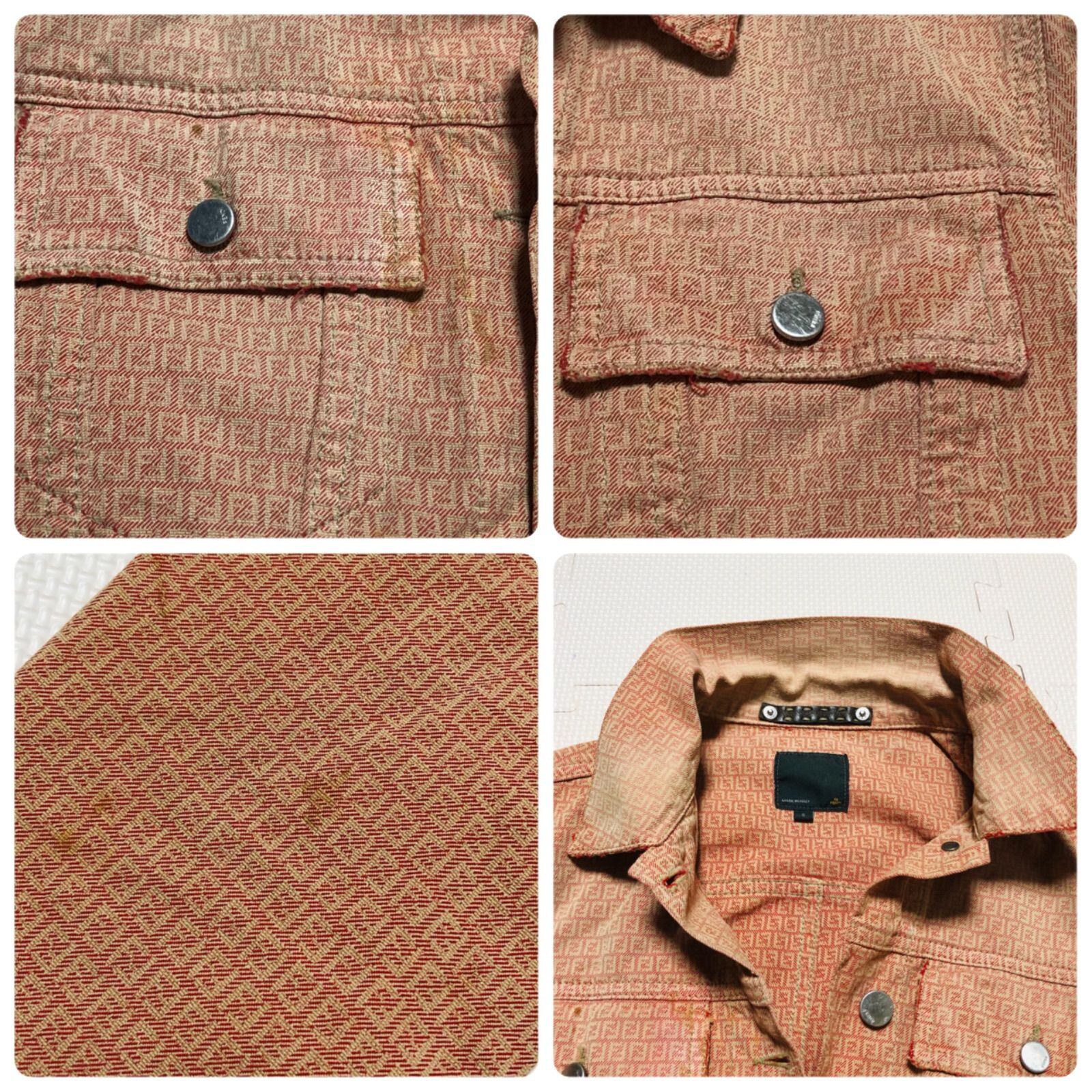 ■希少■FENDI フェンディ ズッカ FF総柄 デニムジャケット Gジャン sizeS ロゴボタン イタリア製 オレンジ コットン100% レディース