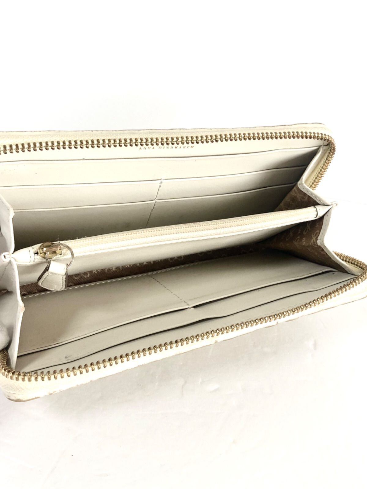 ■希少■ANYA HINDMARCH アニヤハインドマーチ イントレチャート 長財布 ロゴ 編み込み アイボリー×シルバー タッセル レザー 本革 レディース 箱付き