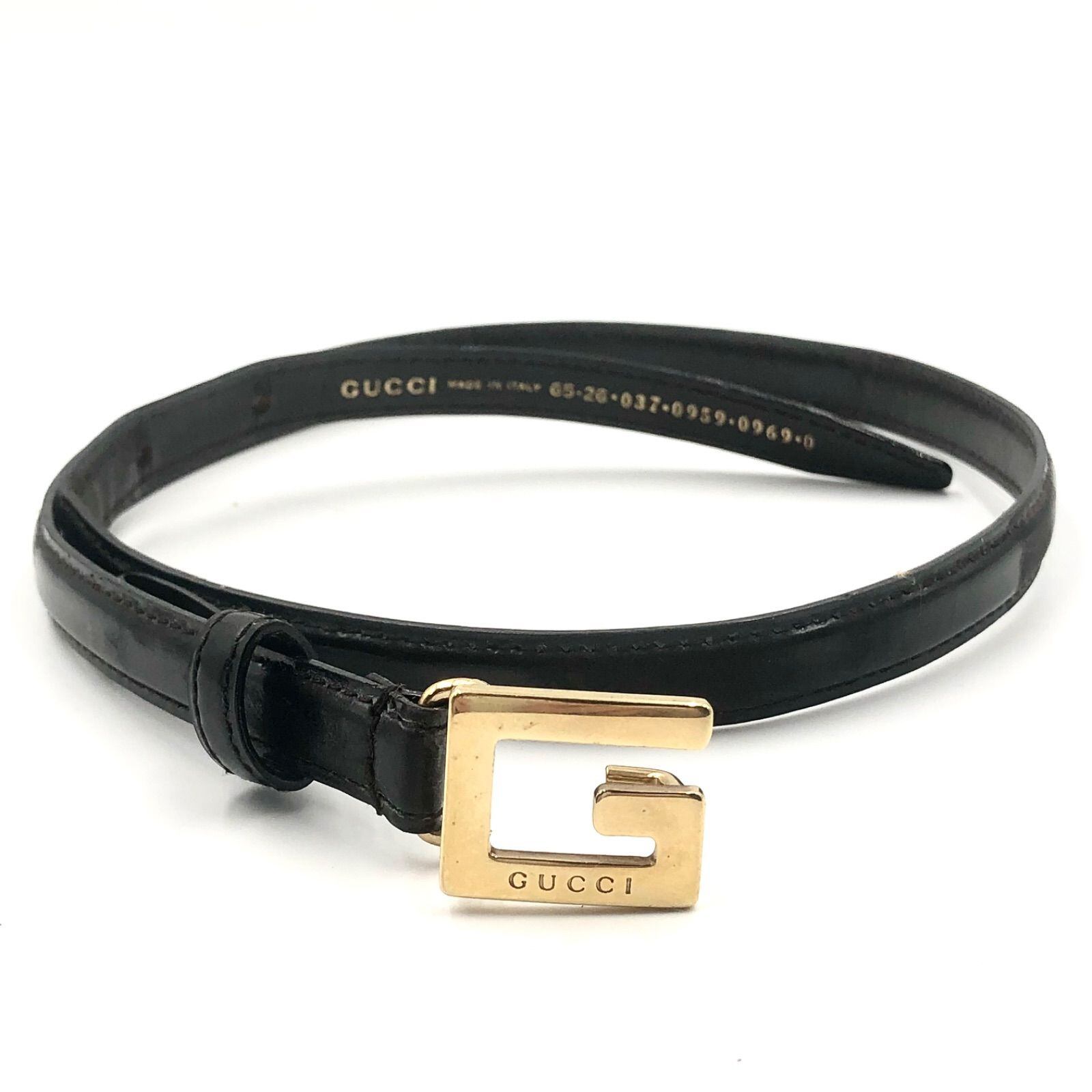 GUCCI グッチ G金具 ベルト レディース レザー 本革 ブラック ゴールド金具 イタリア製 刻印あり 最大ウエスト65cm
