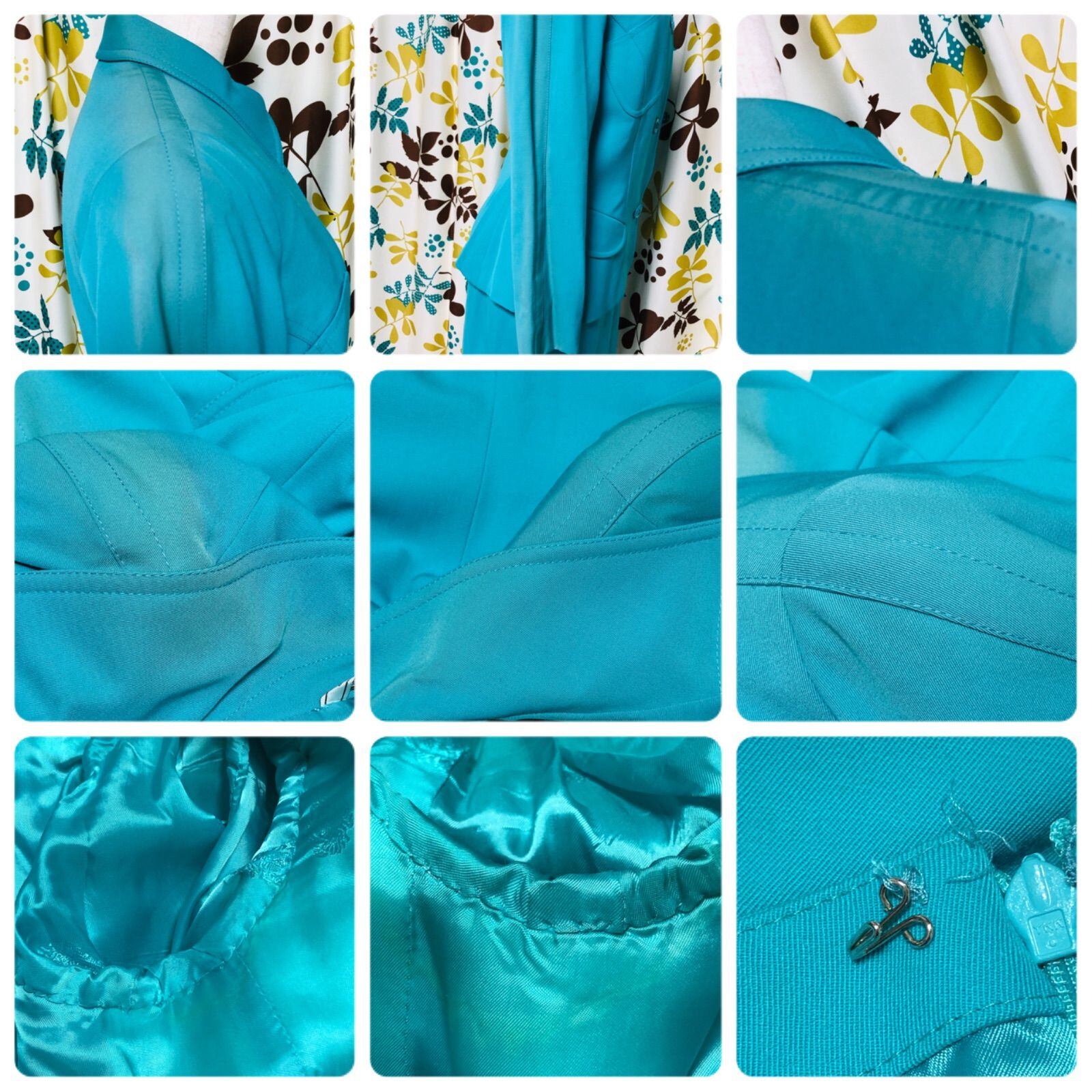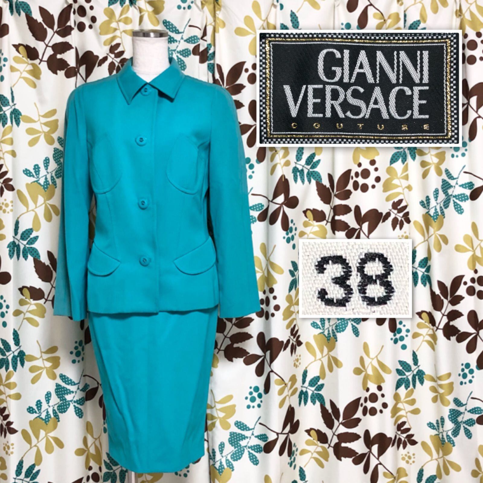 GIANNI VERSACE COUTURE ジャンニヴェルサーチクチュール ウールセットアップスカートスーツ size38(XS相当) イタリア製 ターコイズブルー ギリシア雷文ボタン 裏地メデューサ総柄