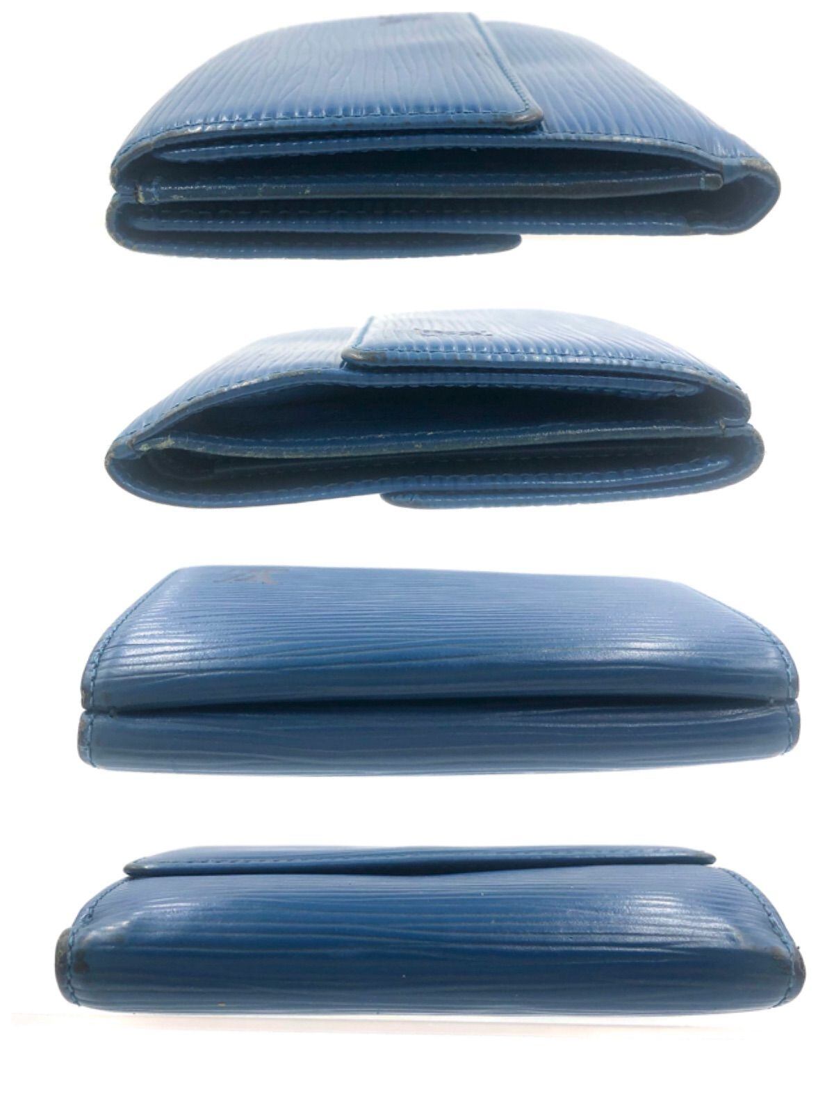 ■外観良品■LOUIS VUITTON ルイヴィトン エピ トレドブルー ポルトモネ ビエ カルトクレディ 三つ折り財布 ミニ財布 レザー 本革 フランス製 刻印あり ゴールド金具