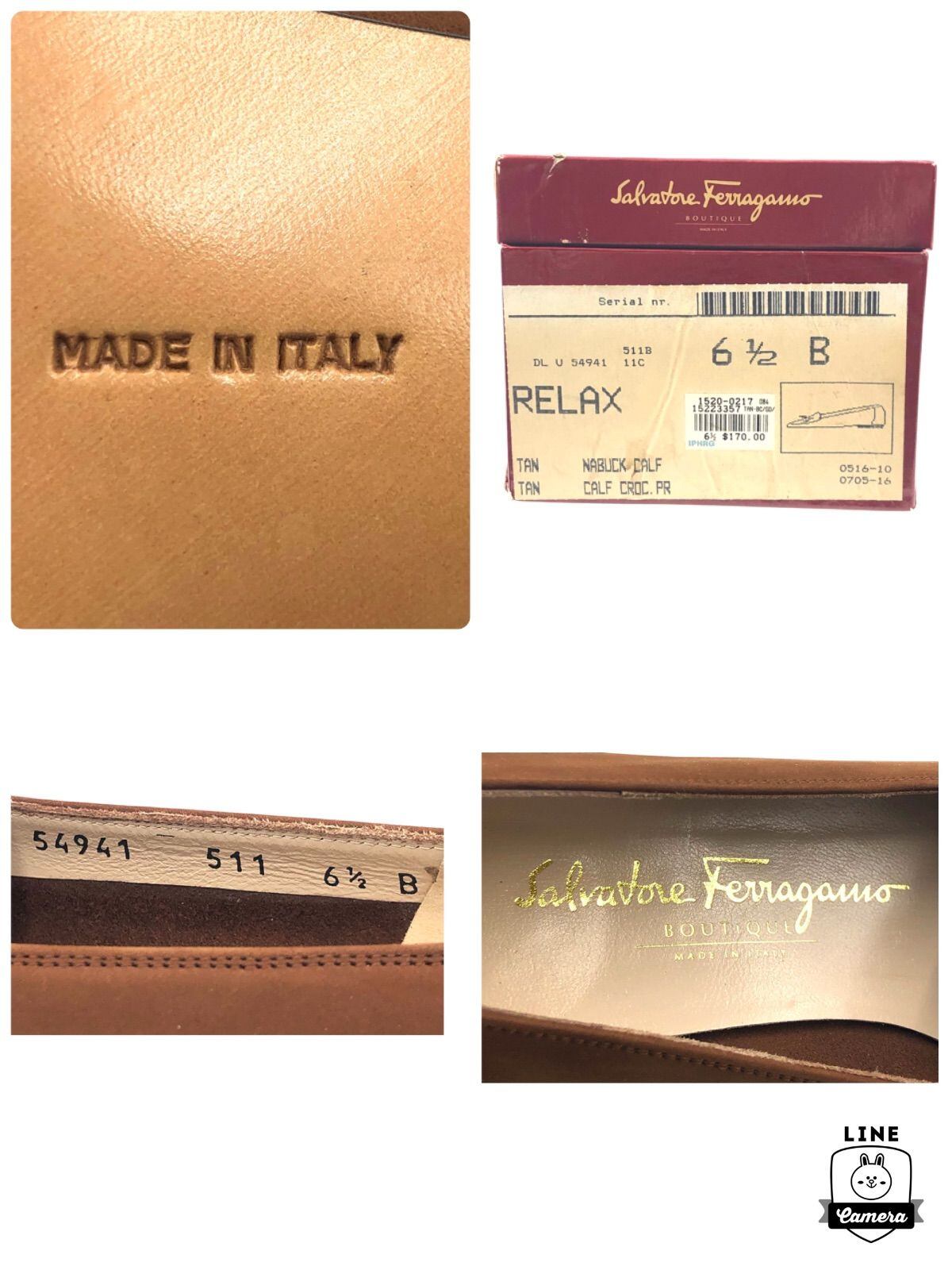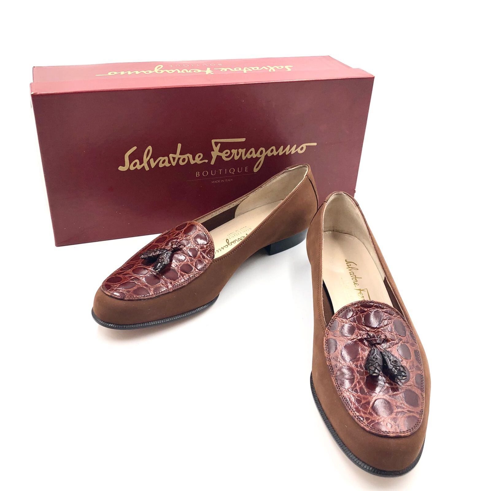 ■極美品■使用回数些少■Salvatore Ferragamo サルヴァトーレフェラガモ クロコ型押しレザー×ヌバック タッセルローファー パンプス 革靴 イタリア製 ブラウン 6.5B(24cm) レディース 箱あり