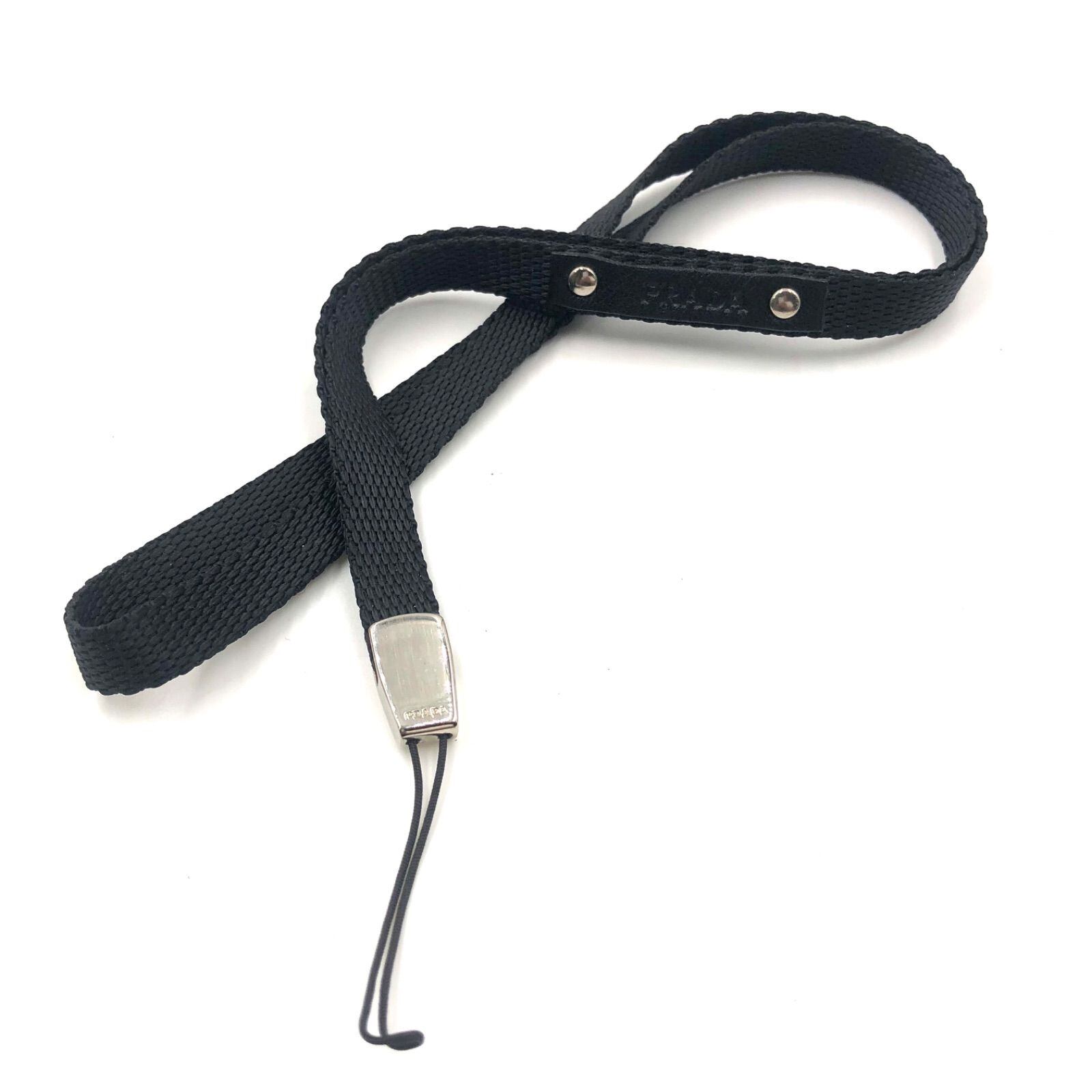 ■美品■希少■PRADA プラダ ネックストラップ ロゴ金具 ブラック シルバー金具 ナイロンキャンバス×レザー