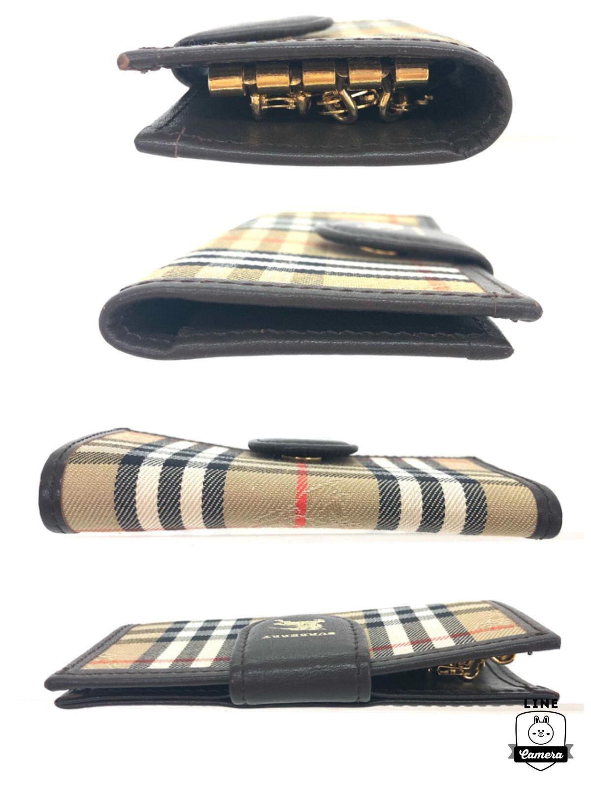 ■極美品■BURBERRY バーバリー ノバチェック シャドーホース 4連キーケース キャンバス×レザー ベージュ×ブラウン ゴールド金具 ユニセックス