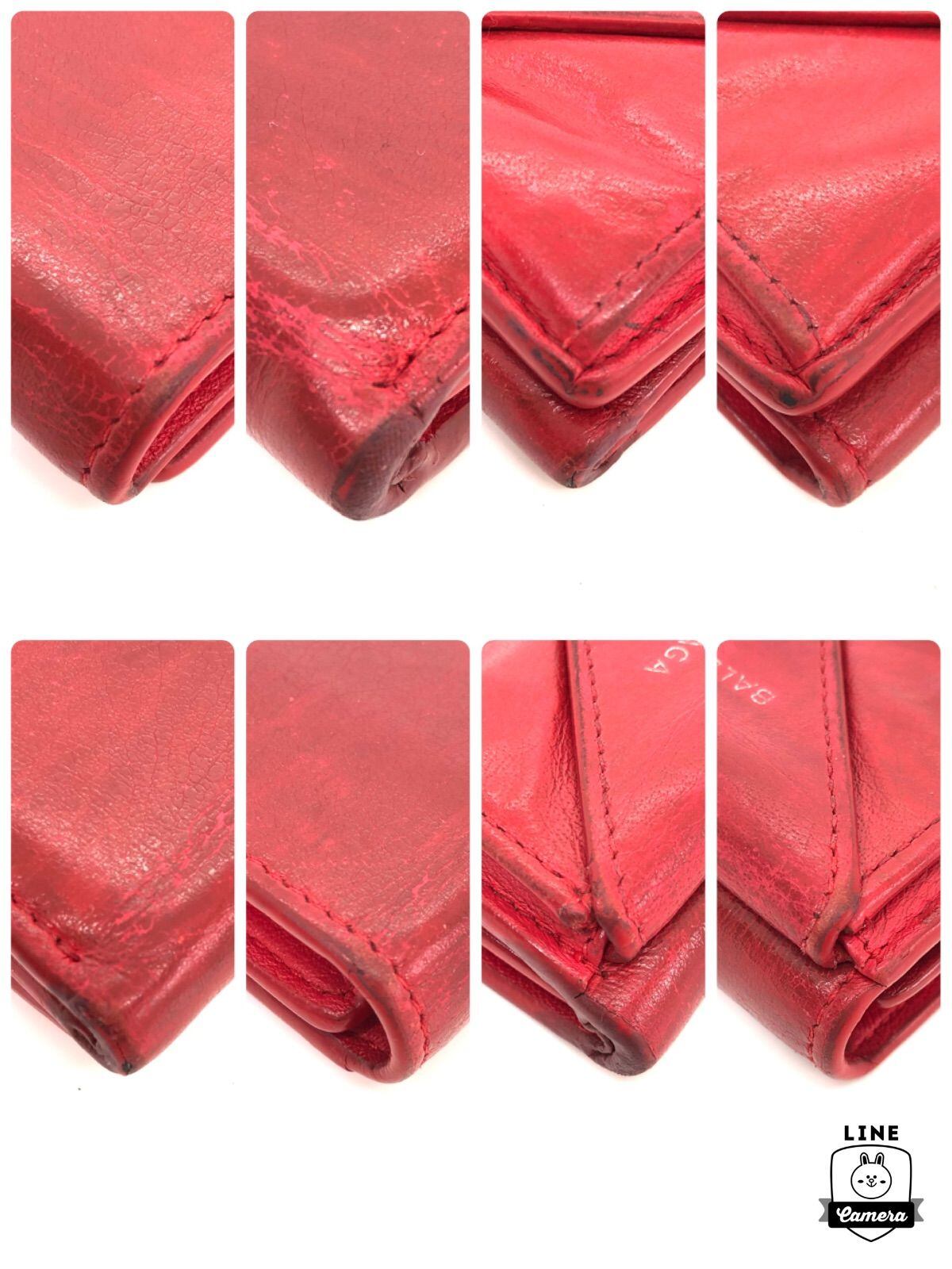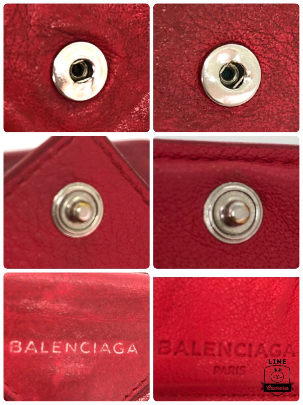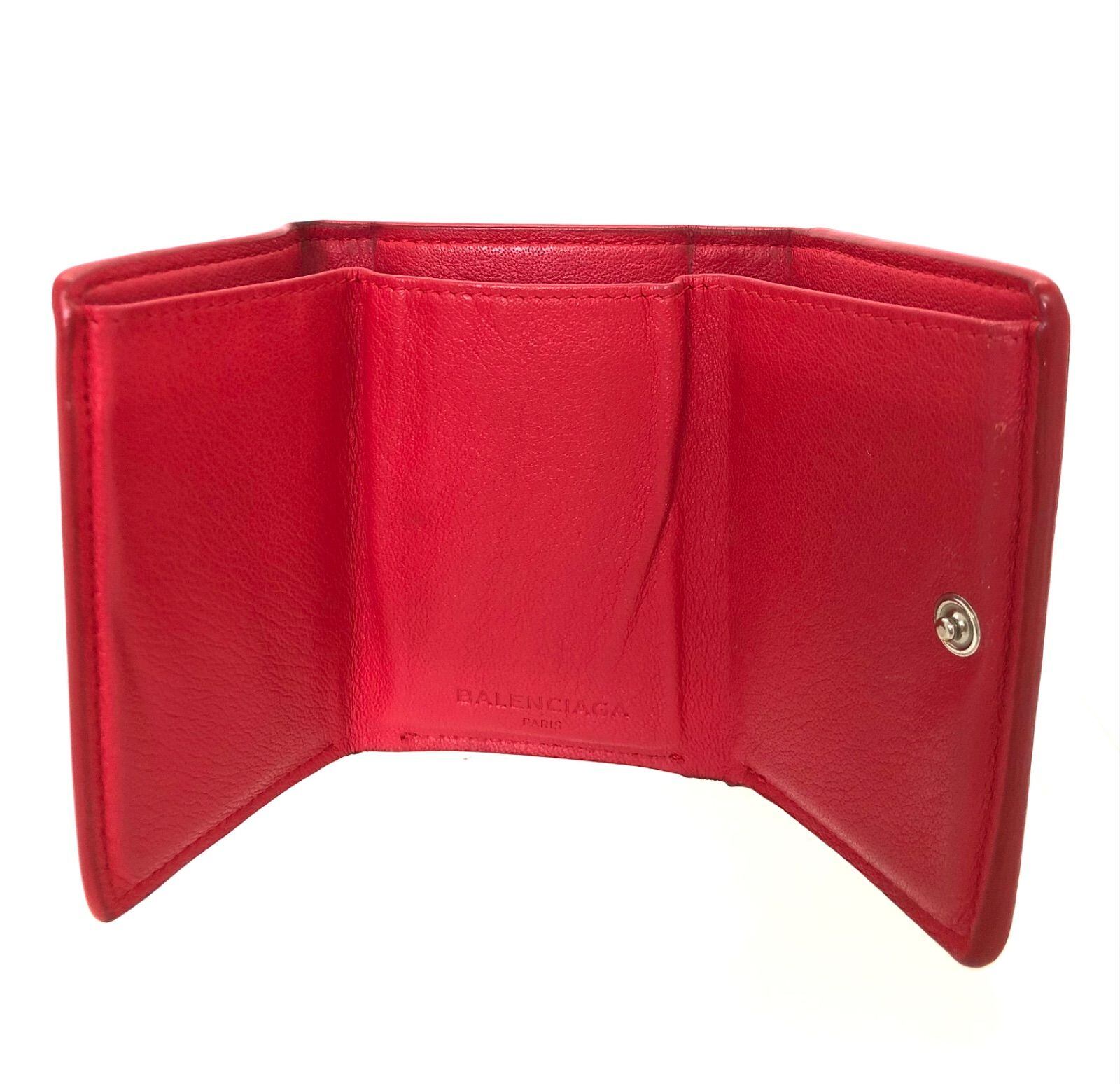 BALENCIAGA バレンシアガ ペーパーミニウォレット 三つ折り財布 レター型 レザー 本革 レッド シルバー金具 イタリア製 刻印あり