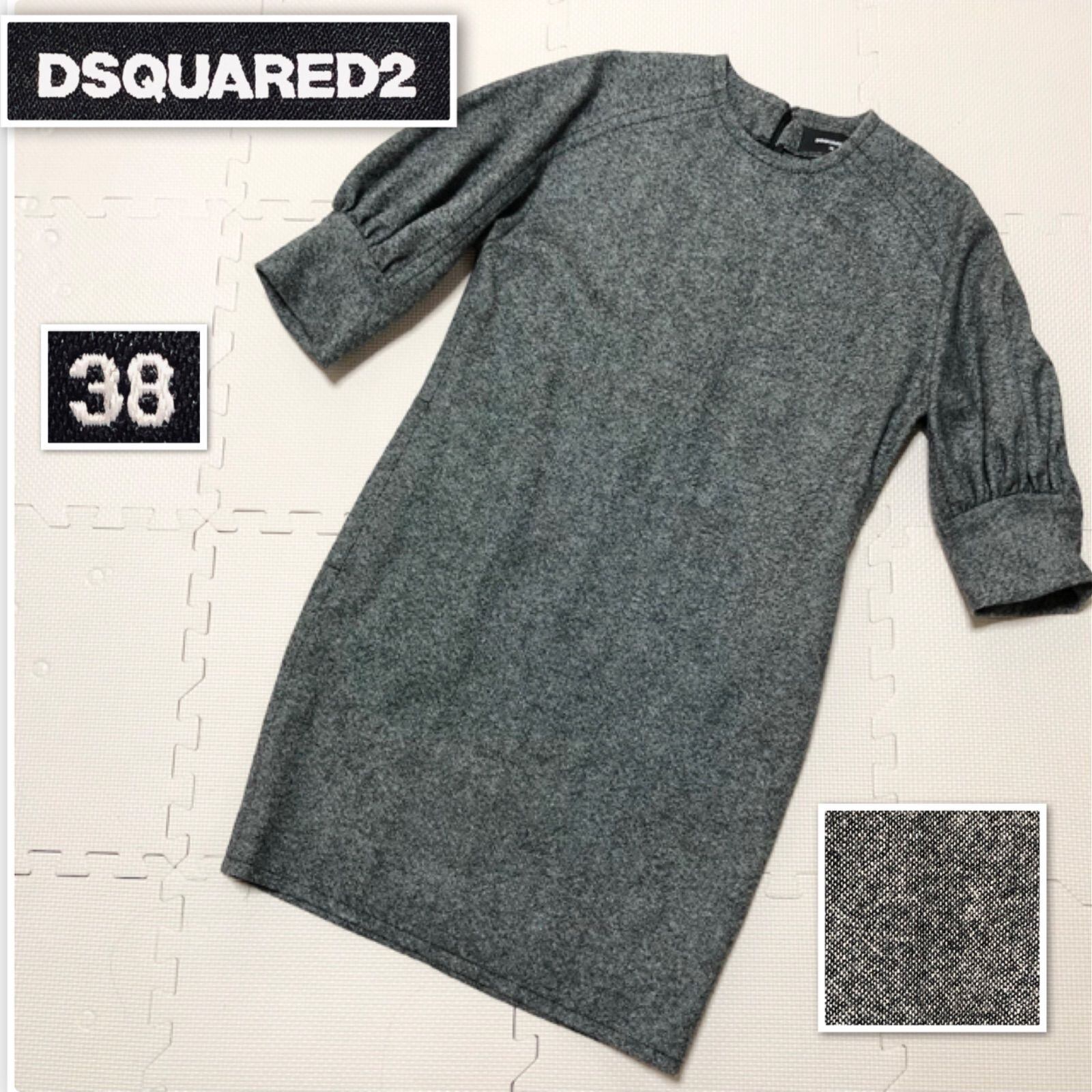 ■極美品■DSQUARED2 ディースクエアード ウールワンピース ノーカラー ラグラン 5分袖 size38(サイズM相当) イタリア製 グレー 裏地なし レディース