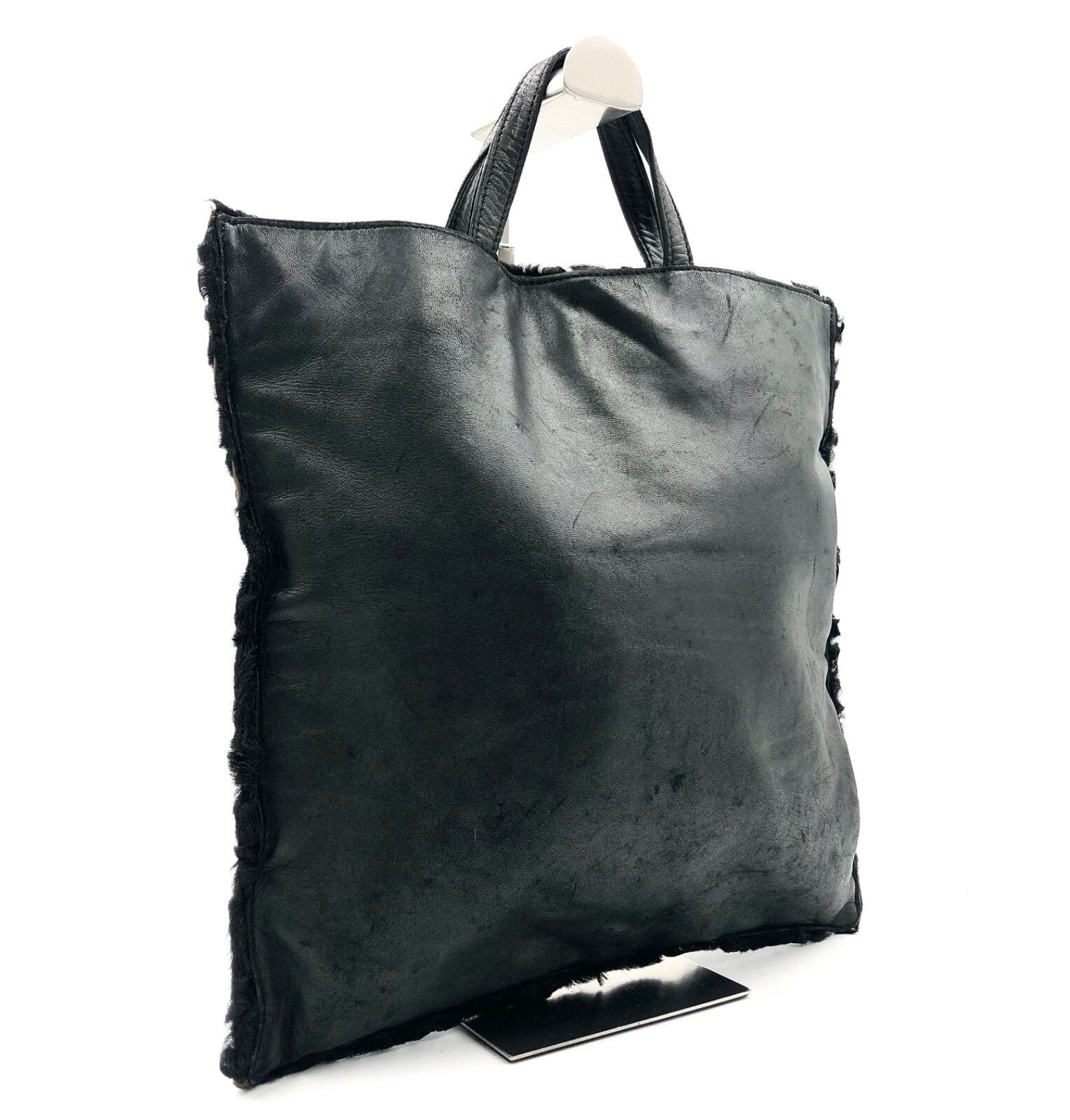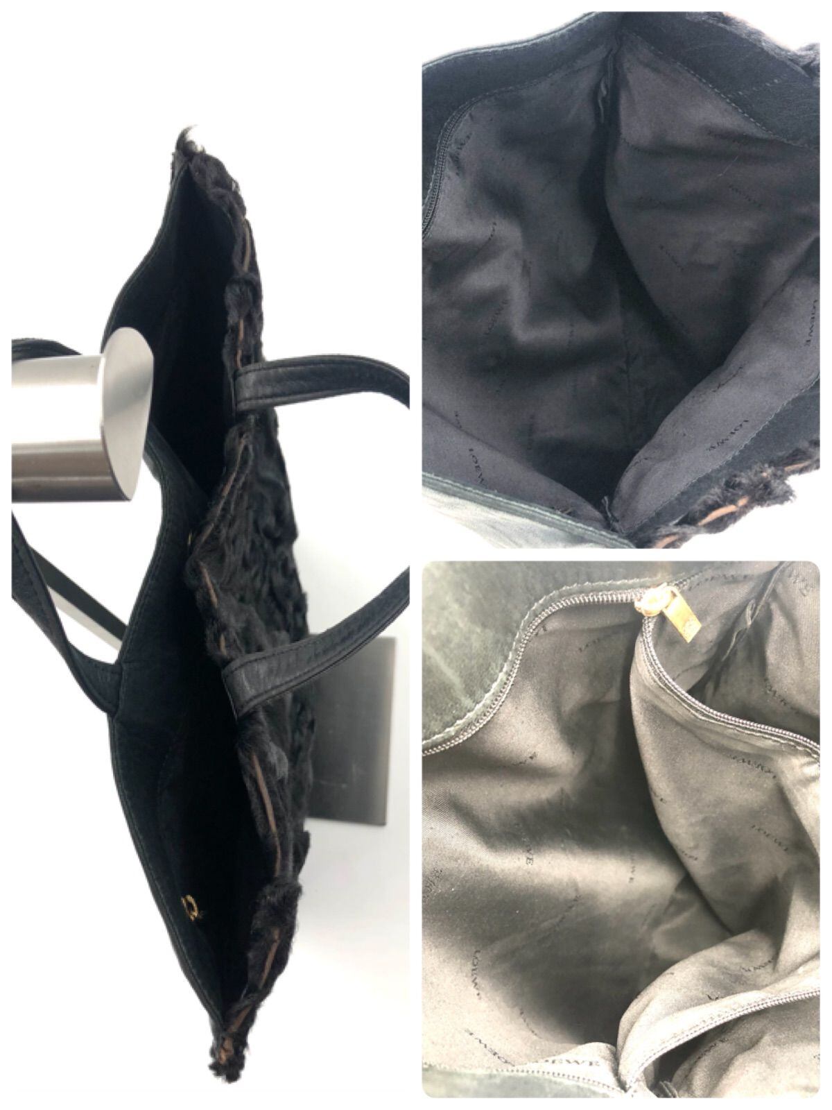 ■超希少ヴィンテージ■LOEWE ロエベ トートバッグ ハラコ×レザー 本革 ブラック ゴールド金具 レディース