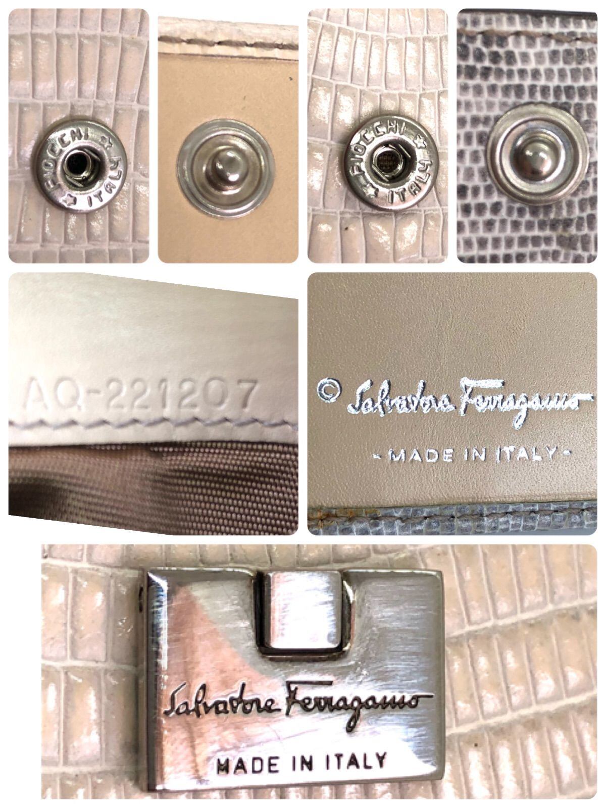 Salvatore Ferragamo サルヴァトーレフェラガモ リザード型押しレザー 折り財布 ベージュ シルバー金具 イタリア製 刻印あり レディース