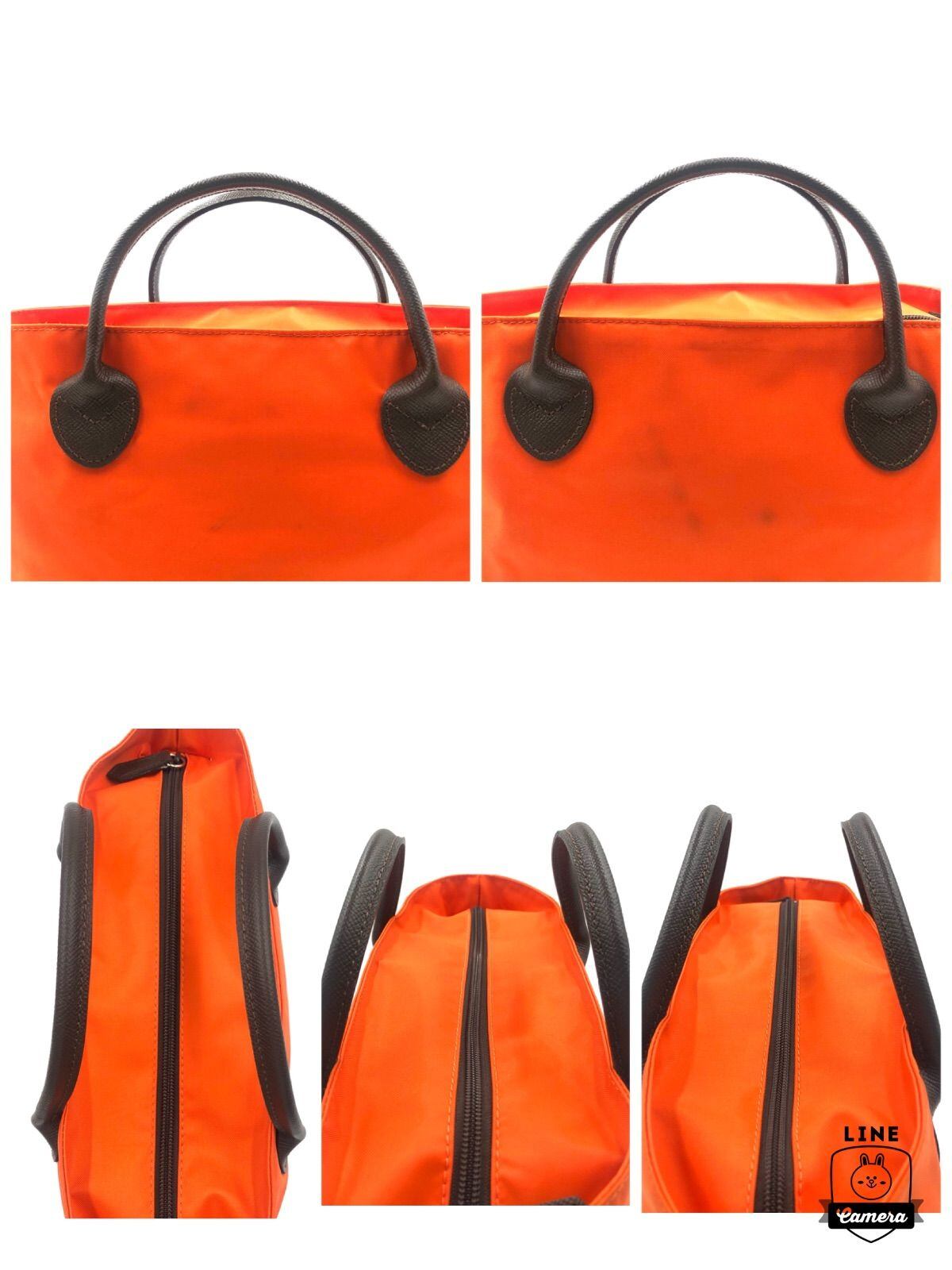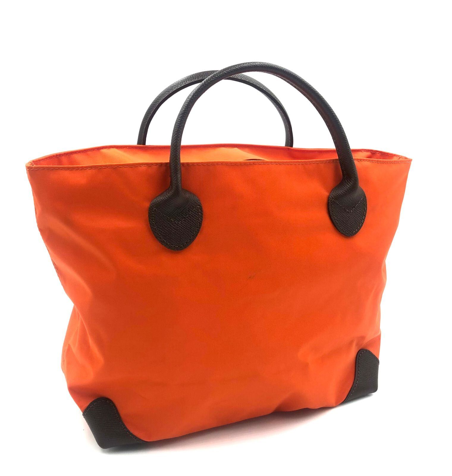 Herve Chapelier エルベシャプリエ 舟形トートバッグ ナイロン×レザー オレンジ×ブラウン レディース