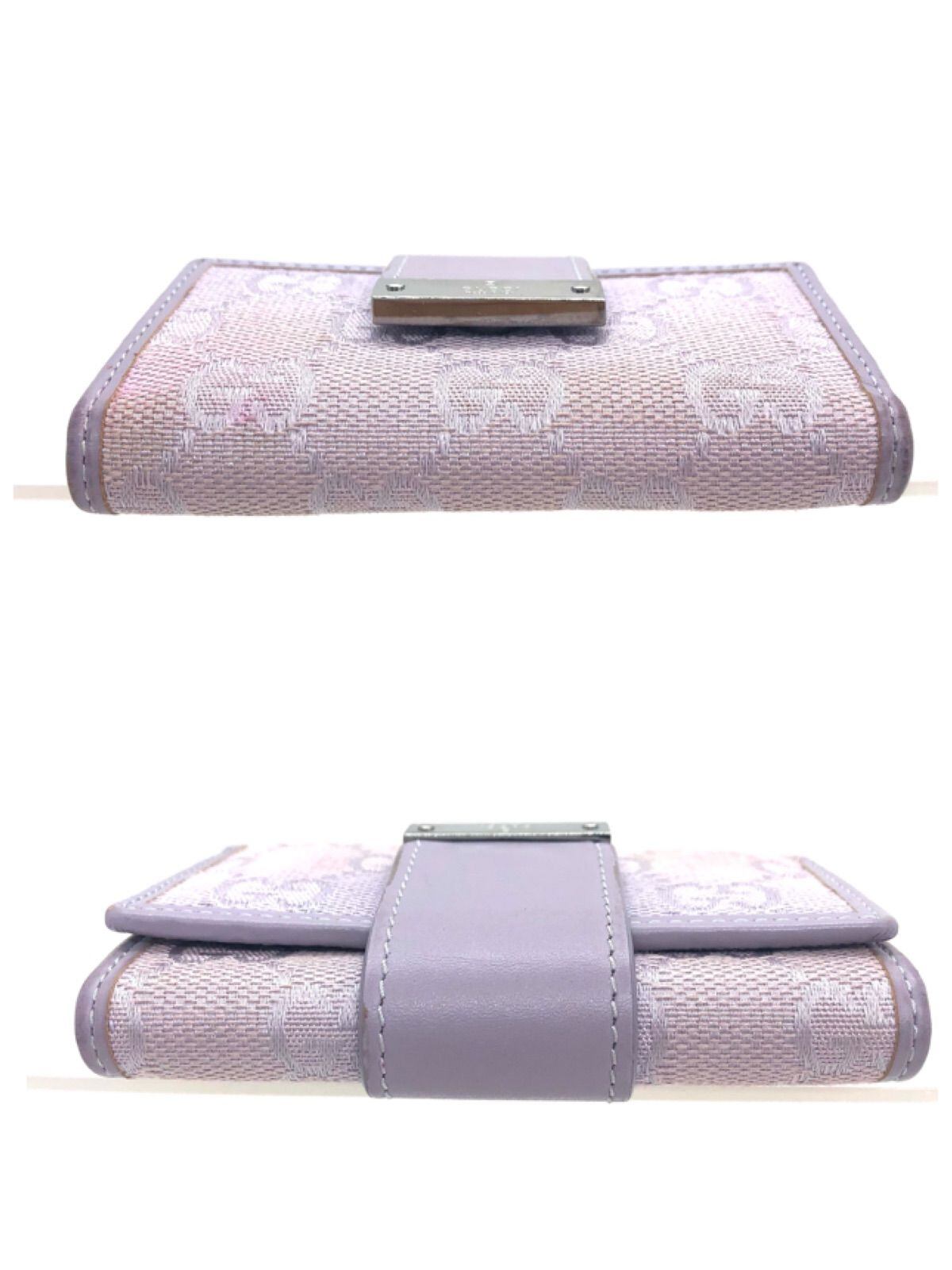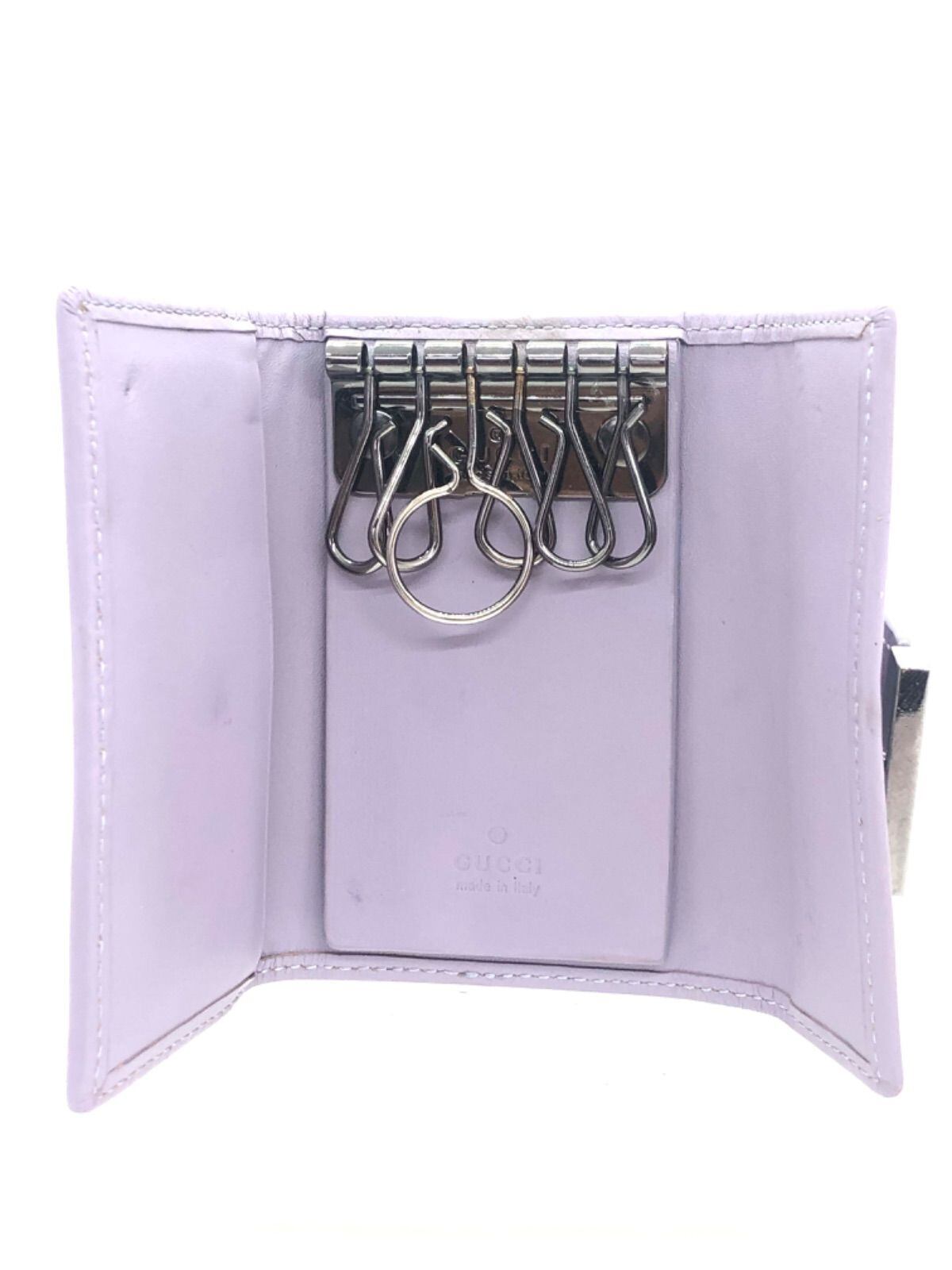 ■美品■GUCCI グッチ GGキャンバス×レザー 6連キーケース ロゴプレート ライトパープル シルバー金具 イタリア製 刻印あり 74212・3661