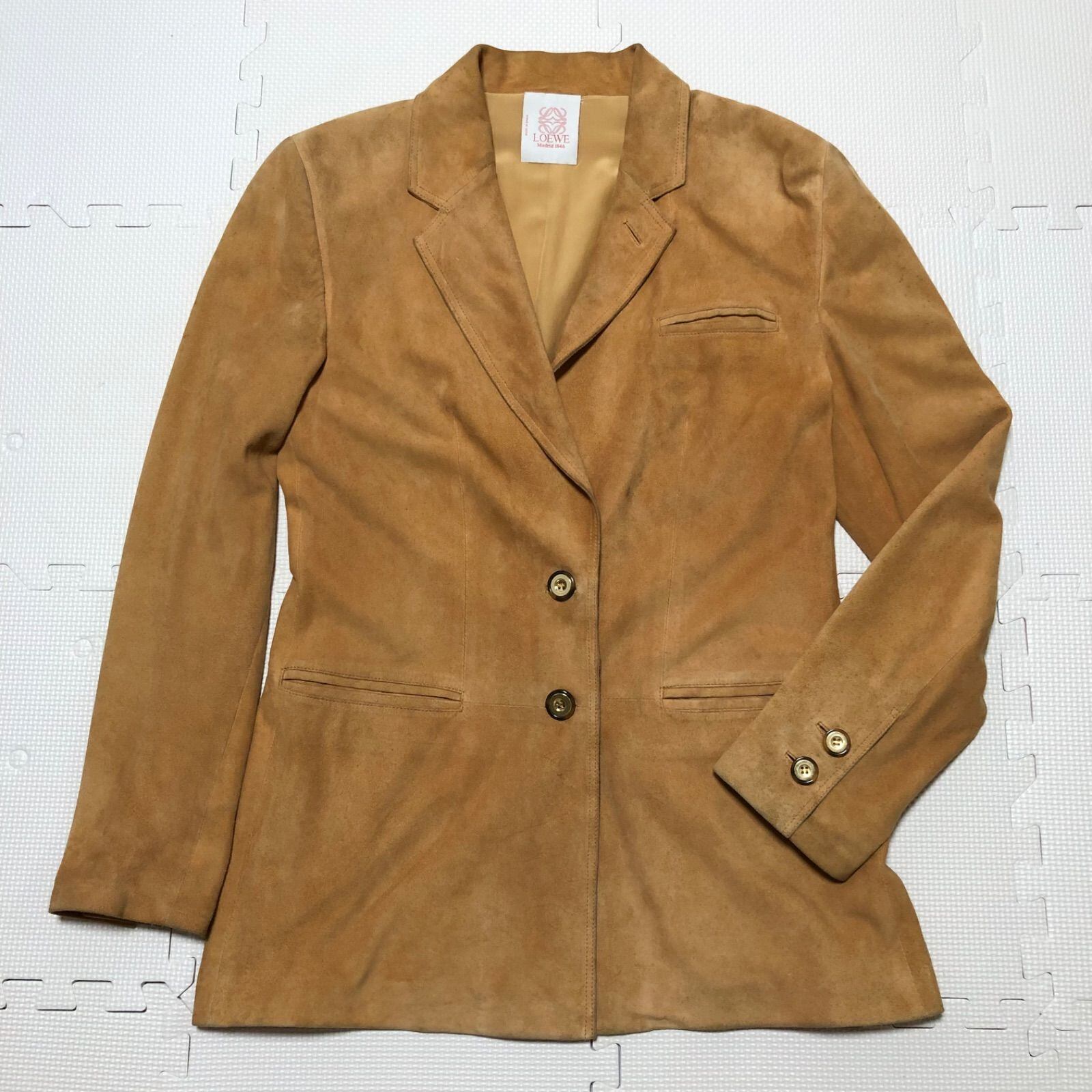 ■希少■LOEWEロエベ ゴートスキン スエードジャケット レザー 山羊革 シングル2つボタン size40 (L相当) スペイン製 ブラウン レディース
