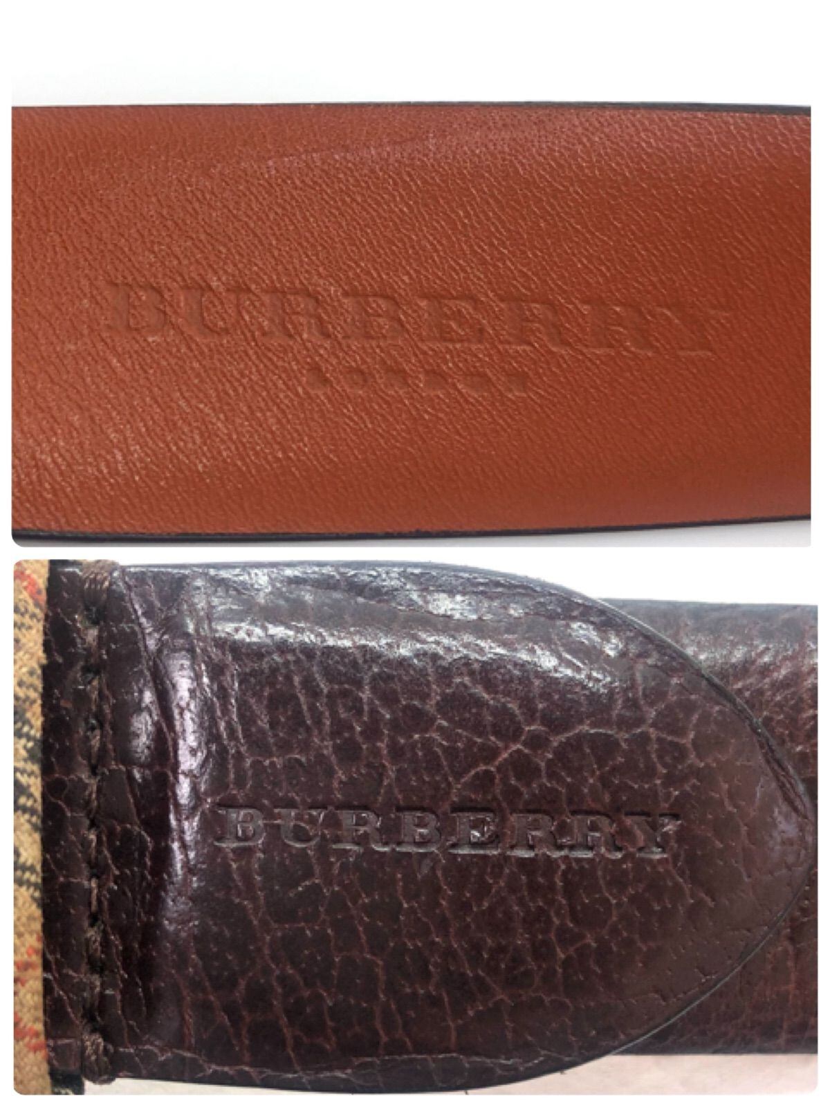 ■良品■BURBERRY バーバリー レザーベルト ダークブラウン ノバチェック シルバー金具 ウエスト最大98cm 本革 メンズ
