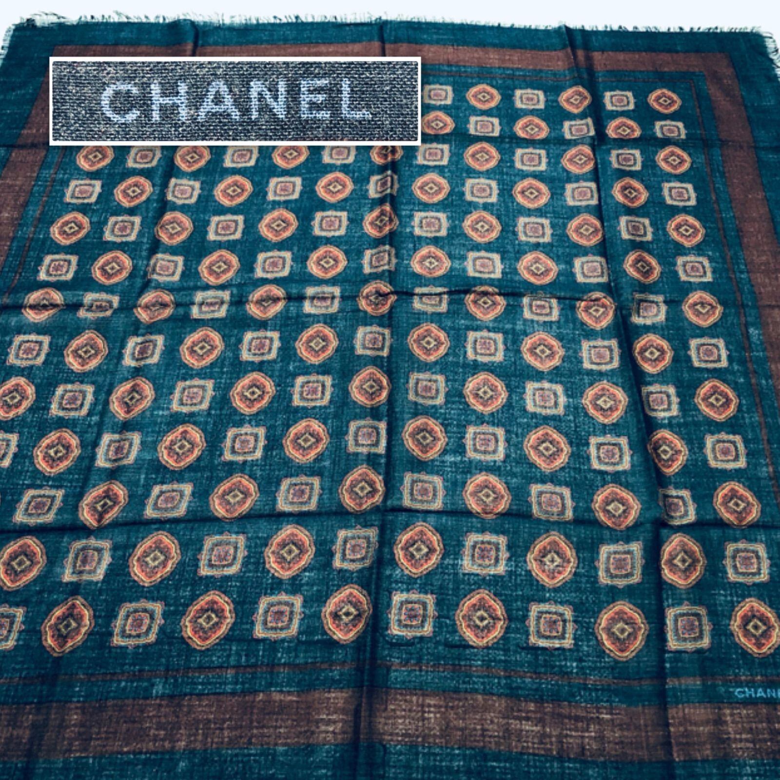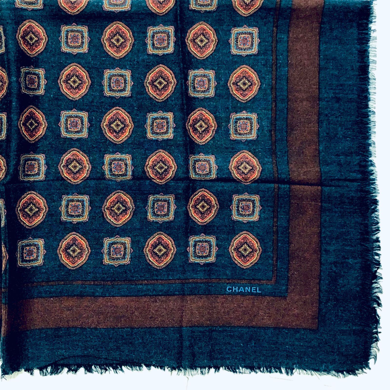 ■美品■CHANEL シャネル 大判スカーフ ストール ジュエリー総柄 ネイビー×ボルドー 83cm×83cm 紙ケース付き レディース