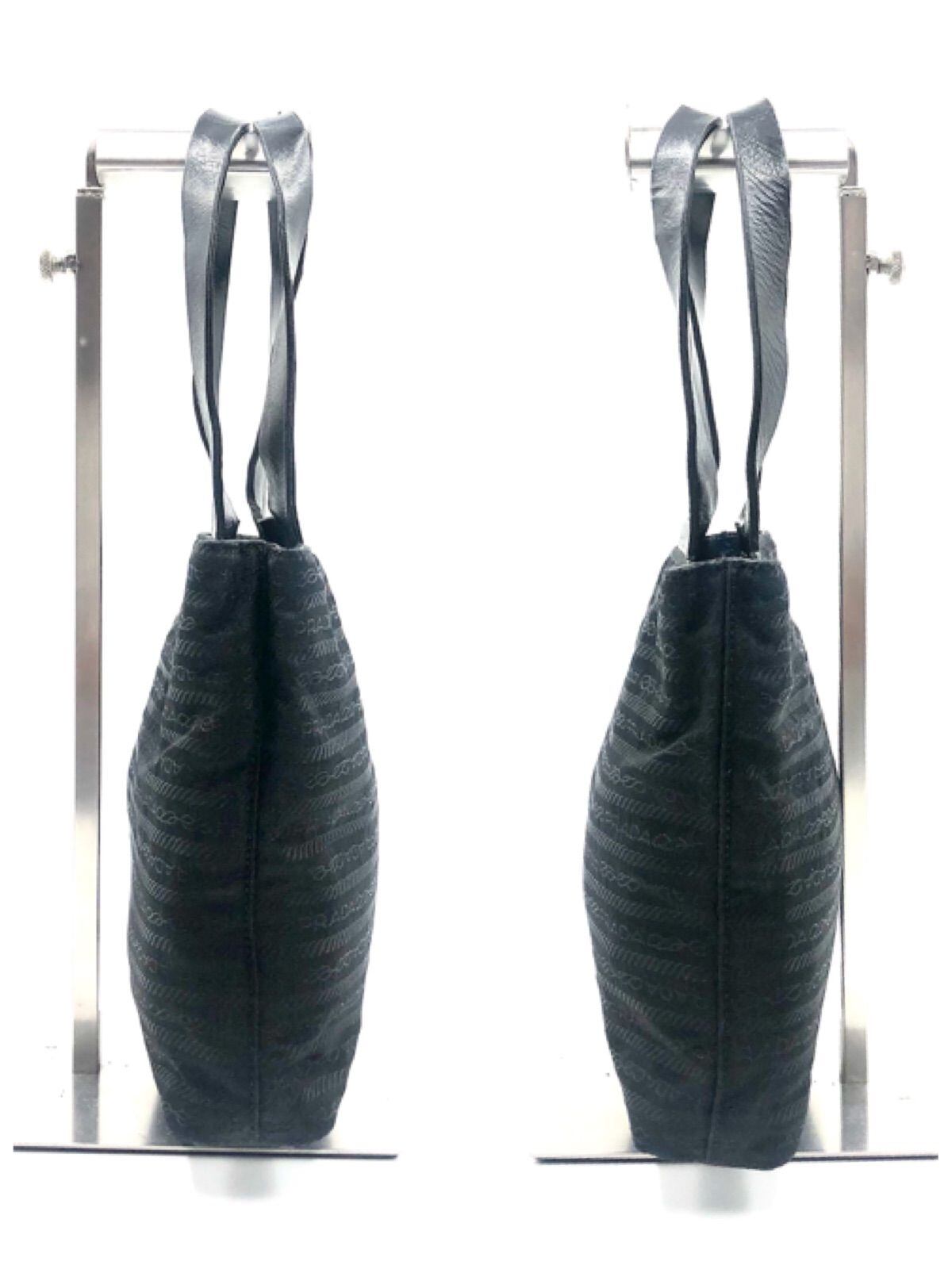 ■極美品■希少デザイン■鑑定済み■PRADA プラダ 裏地総柄デザイン トートバッグ ナイロンキャンバス×レザー ブラック シルバー金具 イタリア製 白タグあり