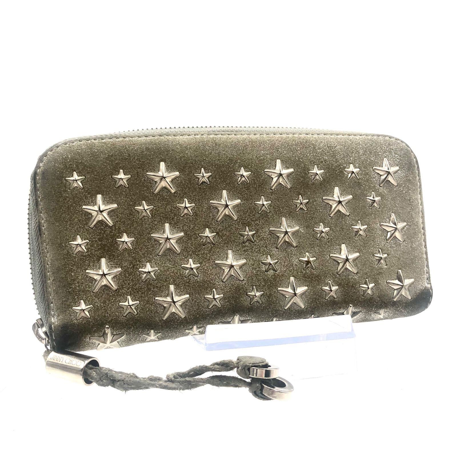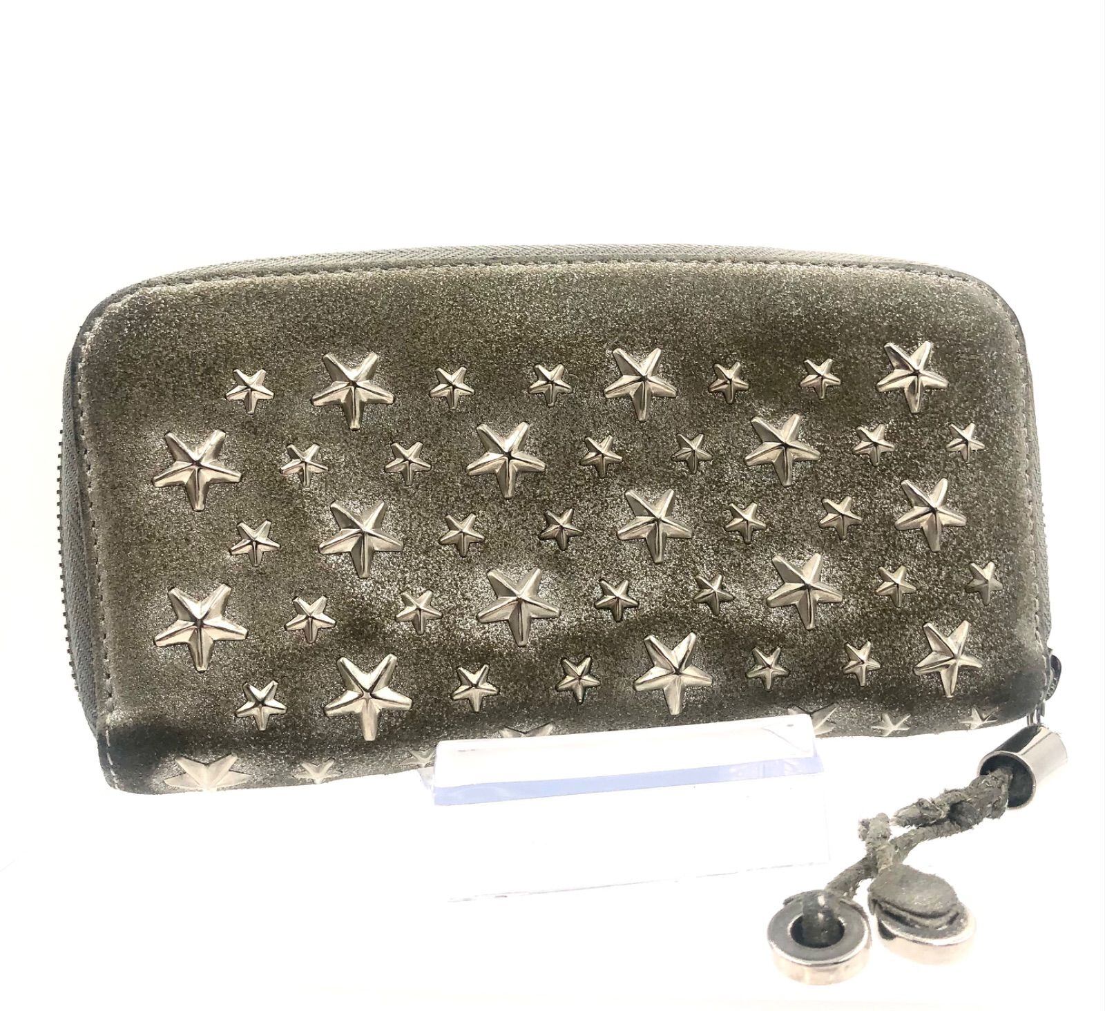 JIMMY CHOO ジミーチュウ FILIPA フィリパ ラウンドファスナー 長財布 スタースタッズ イタリア製 シルバーグレー シルバー金具 レザー 本革 レディース