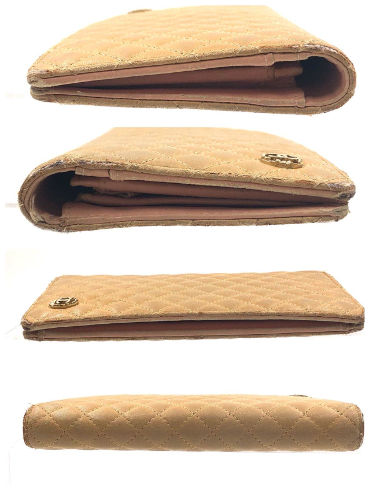 ■希少■CHANEL シャネル マイクロマトラッセ ラムスキン 縦型長財布 二つ折り ココマーク+リボンボタン レザー 本革 ベージュ ゴールド金具 イタリア製 シリアルシールあり 2011年~2012年製 レディース