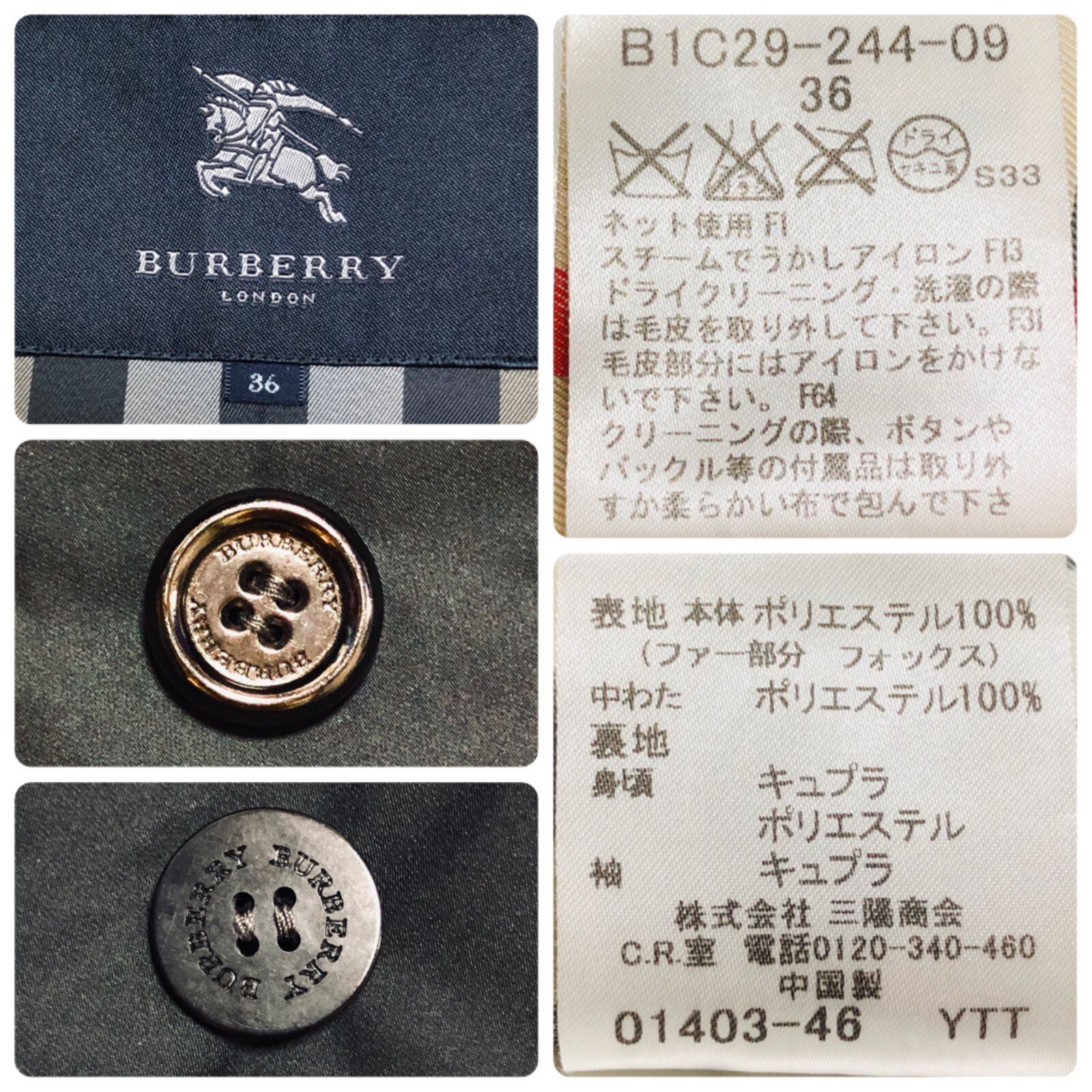 ■希少■BURBERRY LONDON バーバリーロンドン ダブルトレンチコート 中綿 スタンドカラー ブラック×裏地メガチェック ノバチェック size36(サイズS相当) 三陽商会 レディース