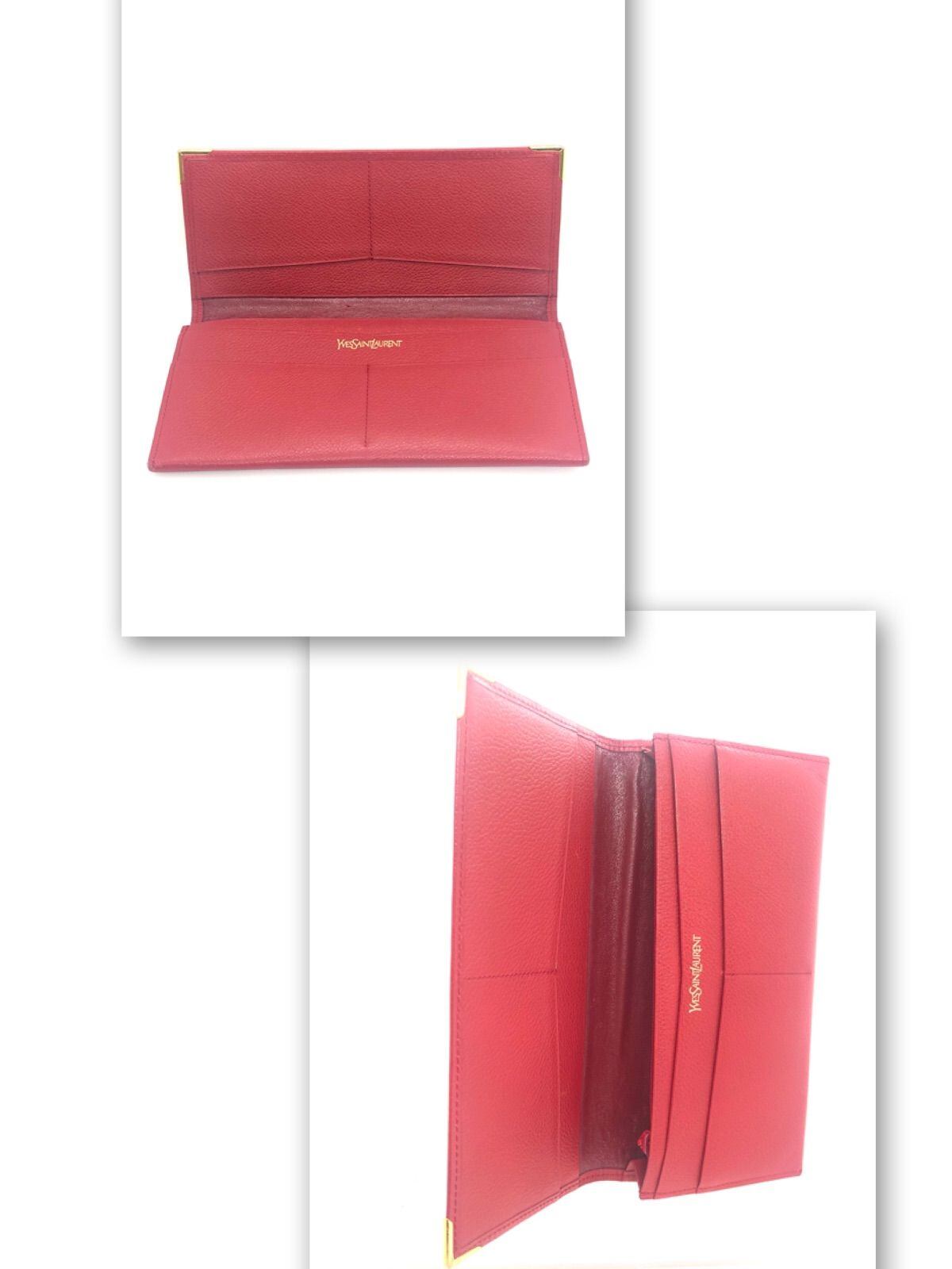 ■外観美品■Yves saint Laurent イヴサンローラン YSLロゴ型押し 三角プレート 長財布 レザー ゴールド金具 ピンク レディース