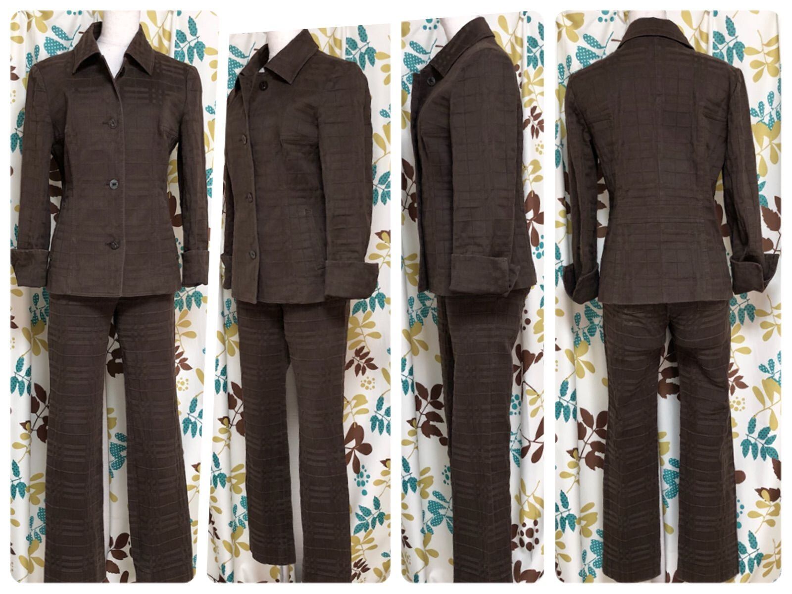 ■希少デザイン■BURBERRY LONDON バーバリーロンドン シャドーノバチェック総柄 パンツスーツ 上下セットアップ size 38 /36(S~M) 三陽商会 コットン ブラウン シングル ロゴボタン 三陽商会 レディース