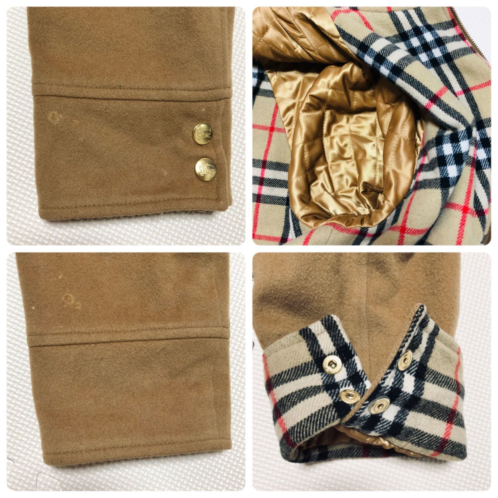 Burberrys バーバリー ウールコート フード フーディ キャメルブラウン×裏地総ノバチェック ロゴ金ボタン+ジッパー開閉