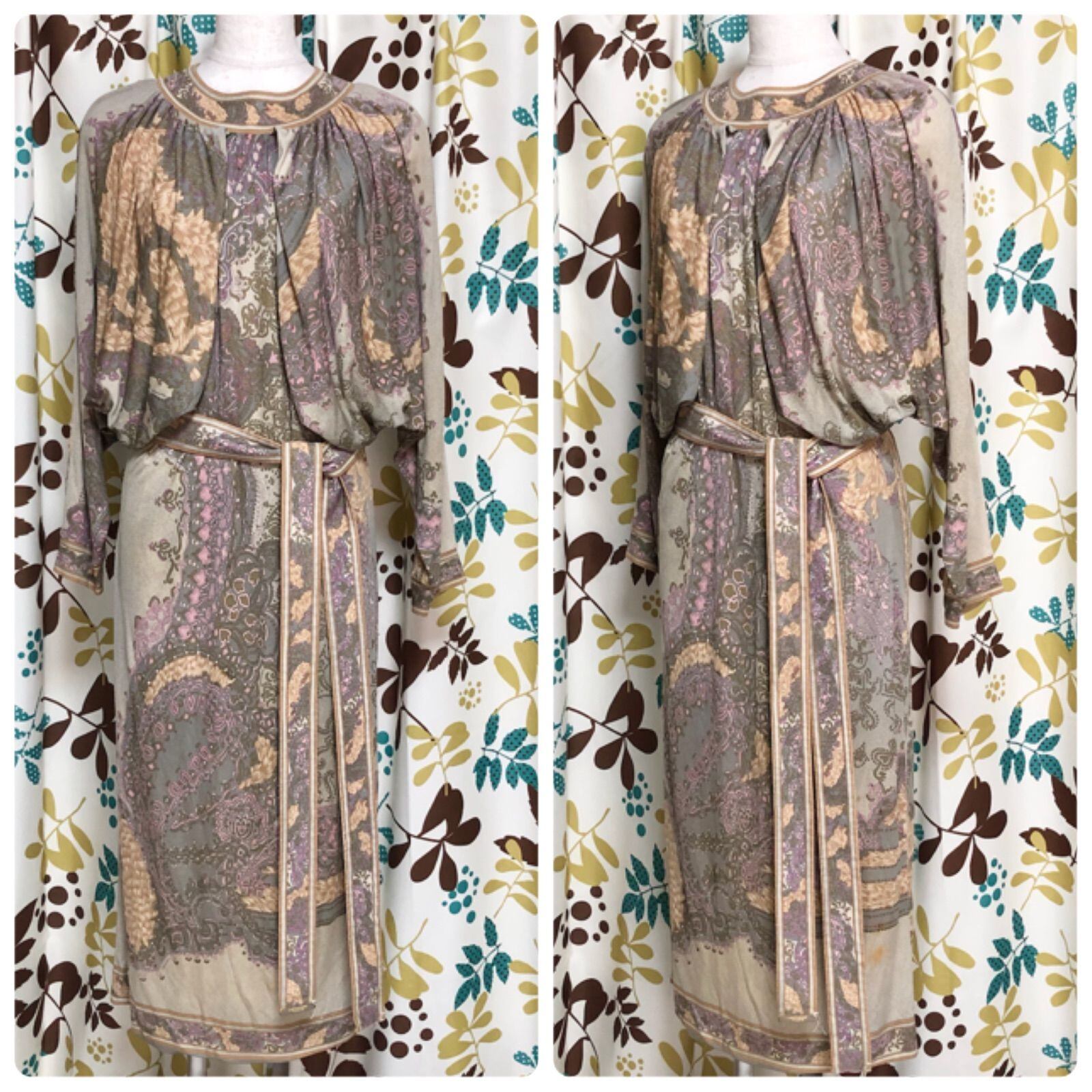 LEONARD FASHON レオナールファッション jersey mikado ベルト紐付きロングワンピース シルク100% ウエスト絞り ラグラン ドルマンスリーブ 裏地なし ストレッチ素材 ボレロ風デザイン size1 フランス製 ベージュ レディース