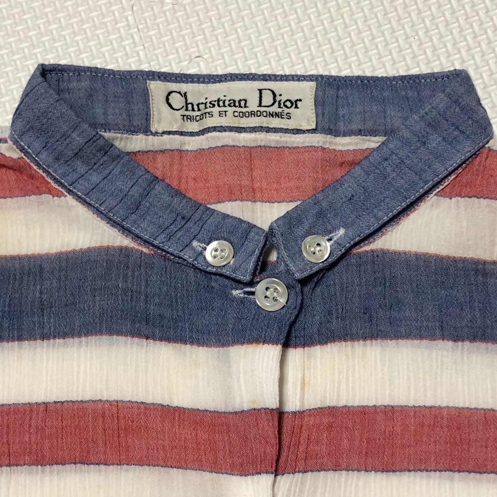 Christian Dior クリスチャンディオール ボタンダウンシャツ リンクル加工 半袖 トリコロール ボーダー レッド×ブルー×ホワイト size42(サイズM相当) イタリア製 コットン100% レディース