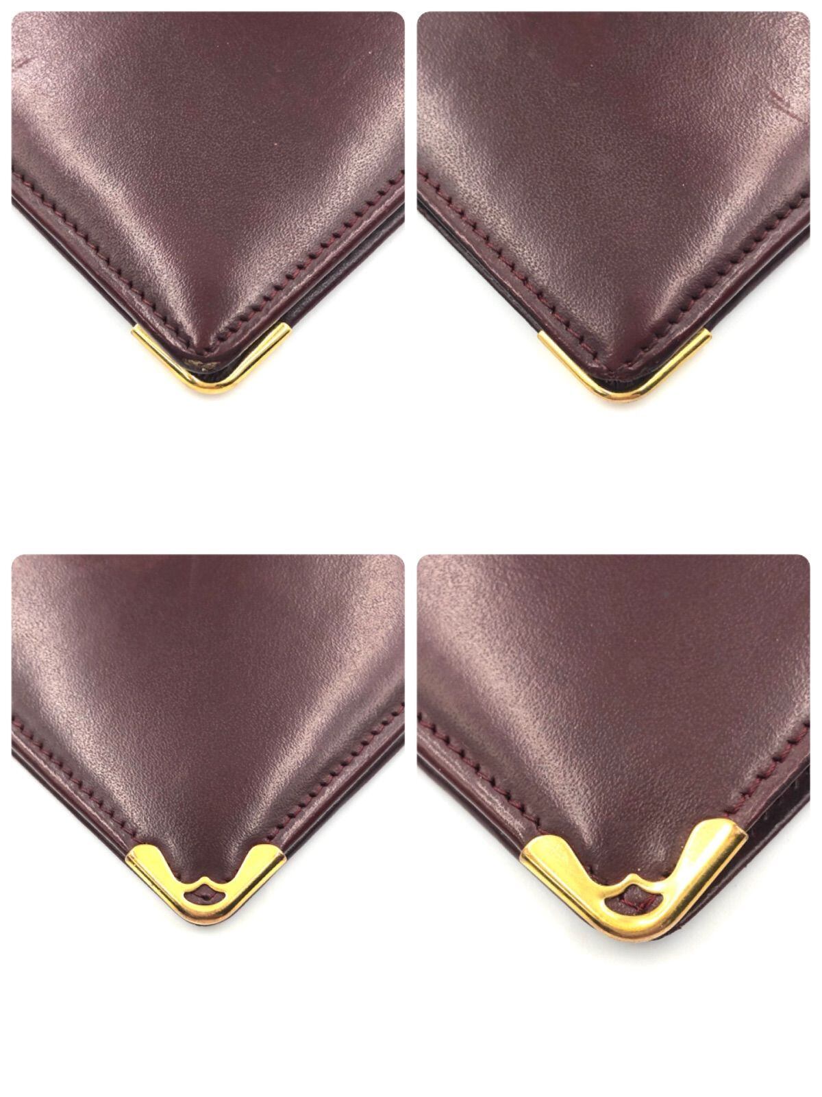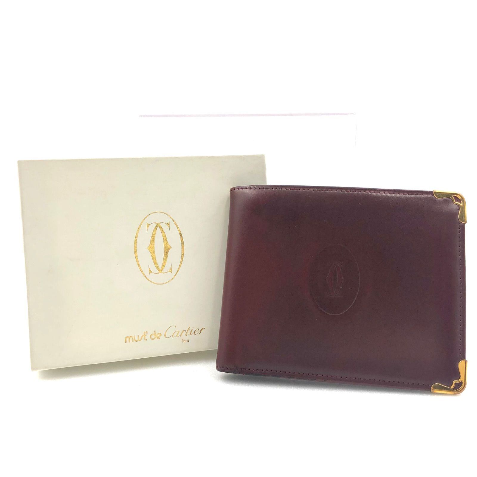 ■美品■Cartier カルティエ must de Cartier マストドゥカルティエ 二つ折り財布 札入れ ロゴ型押し レザー 本革 ボルドー ゴールド金具 箱付き