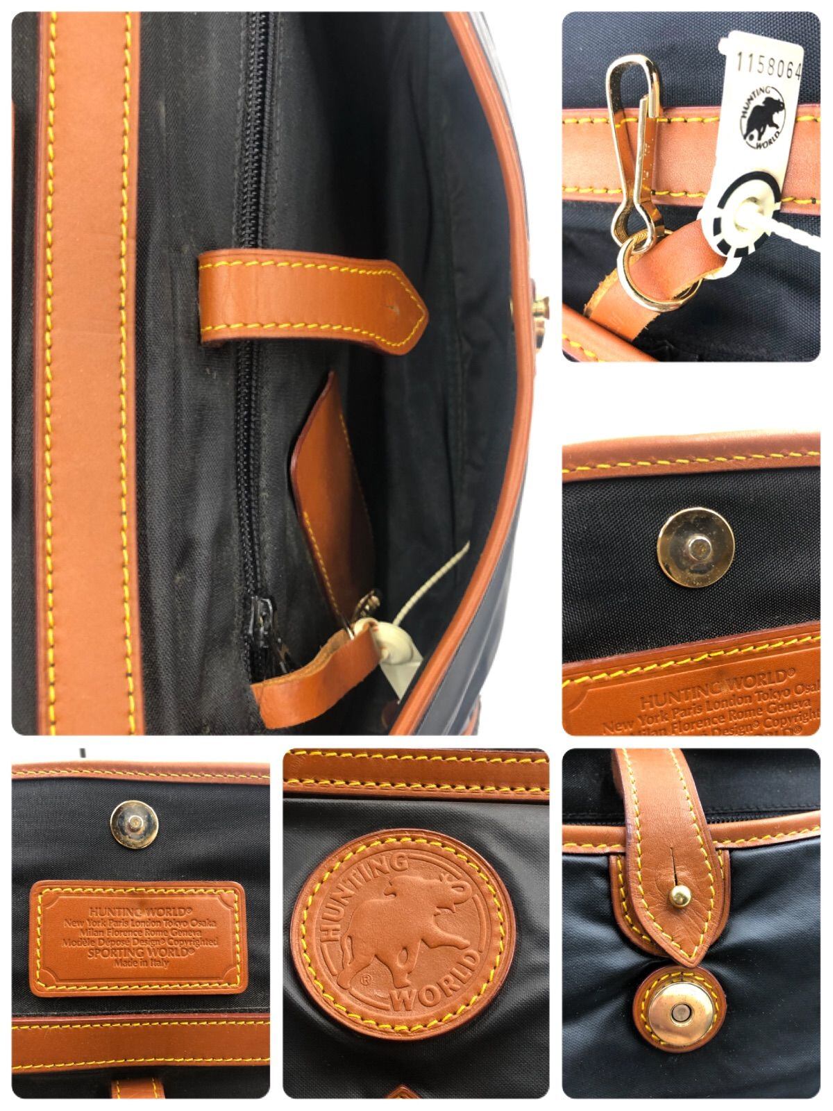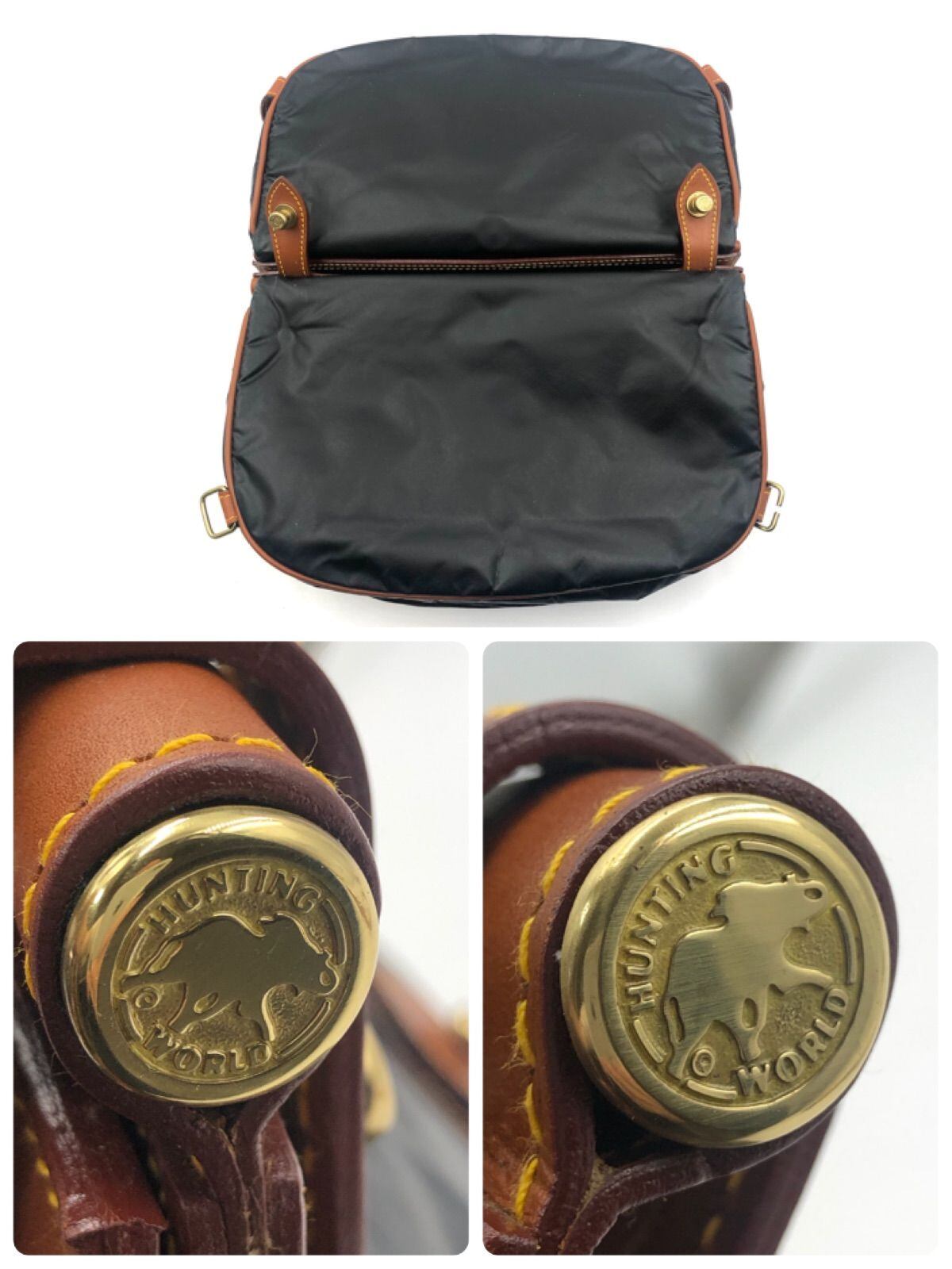 Hunting World ハンティングワールド ショルダーバッグ バチュークロス×レザー イタリア製 グリーン×ブラウン ゴールド金具 ユニセックス 保存袋あり
