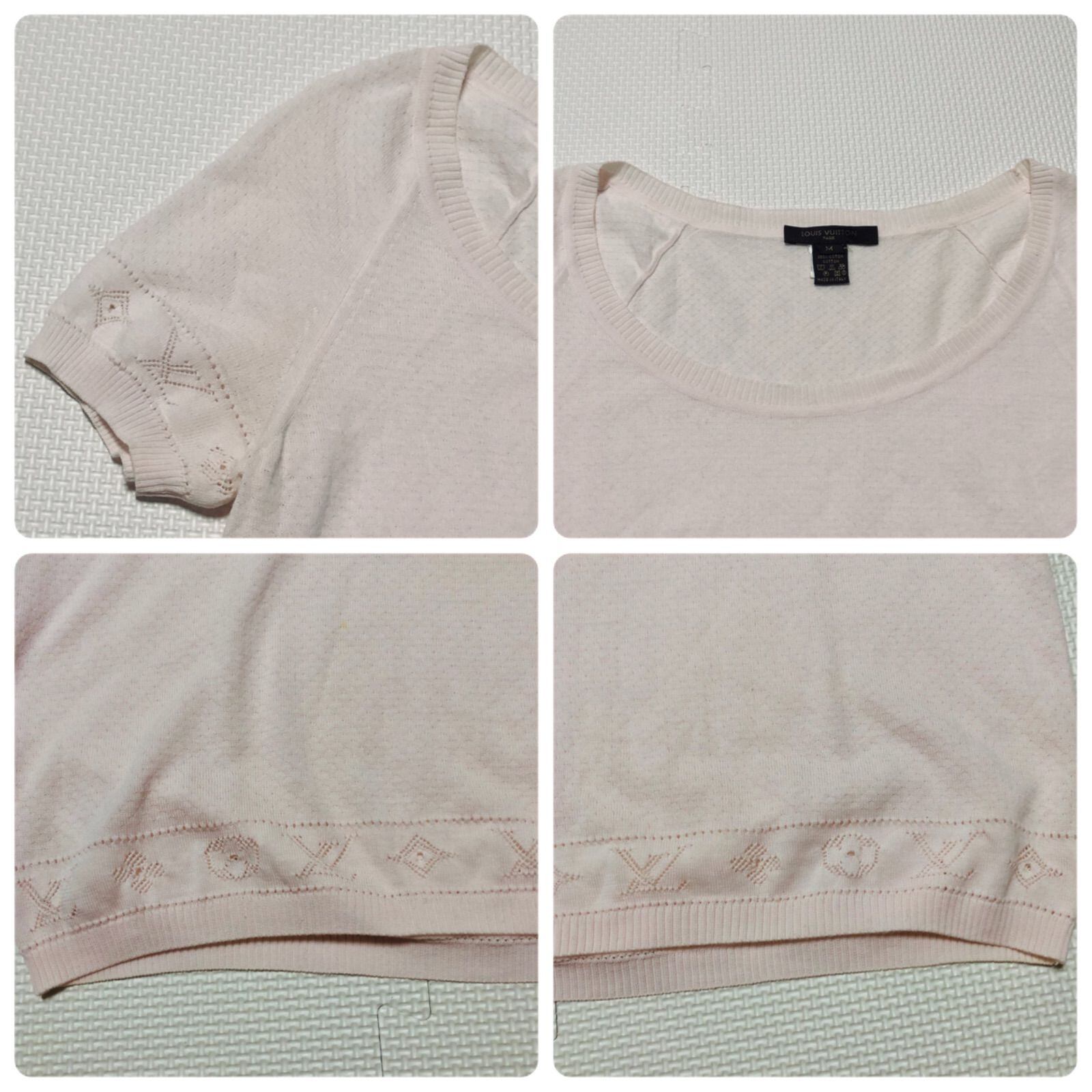 LOUIS VUITTON ルイヴィトン モノグラム サマーニットトップス 半袖 LVロゴパンチング sizeM イタリア製 ピンク コットン100% タグあり レディース