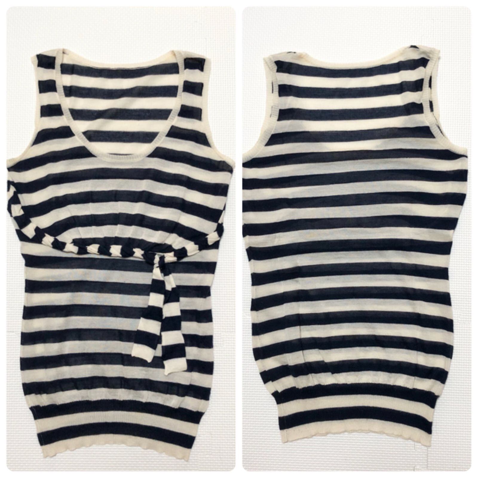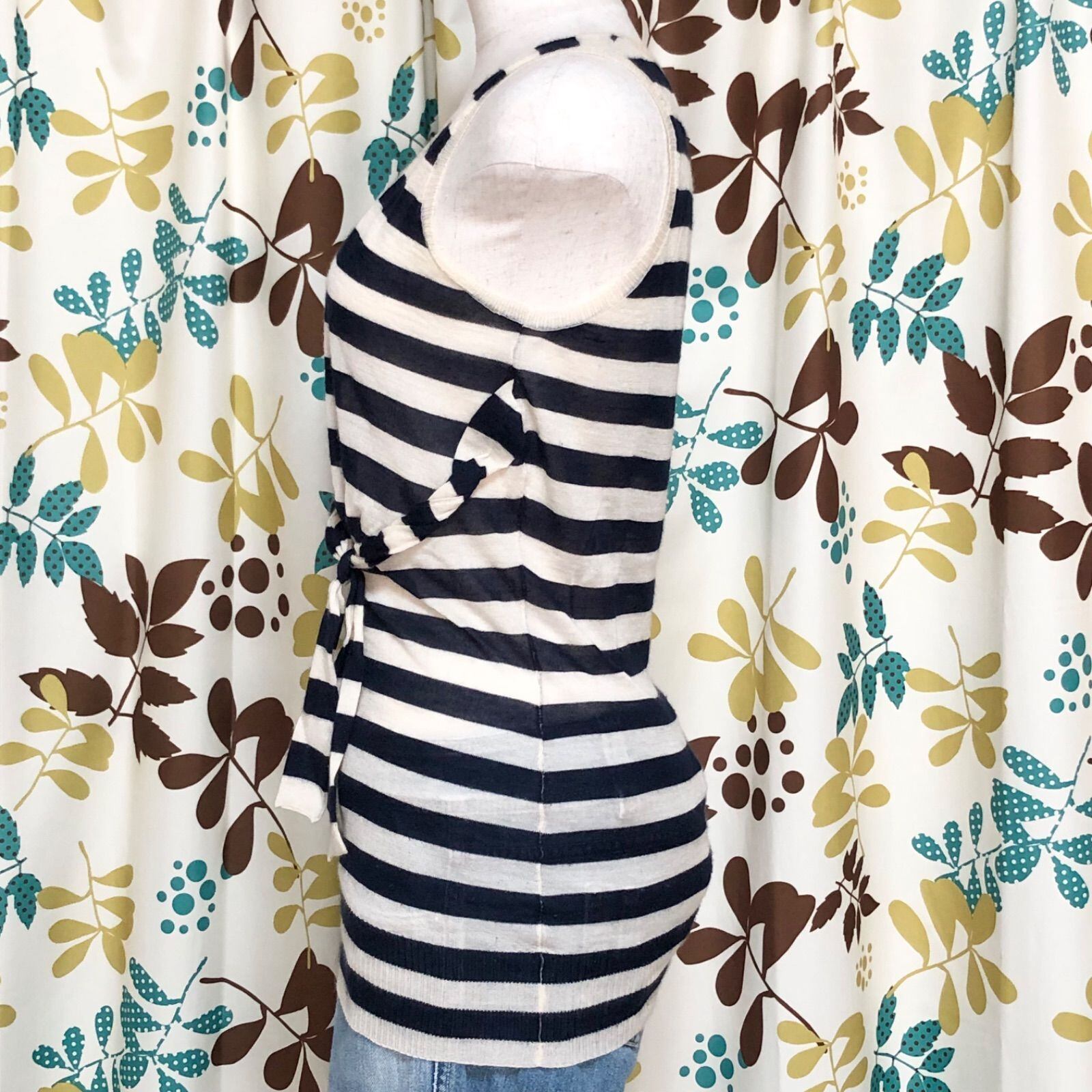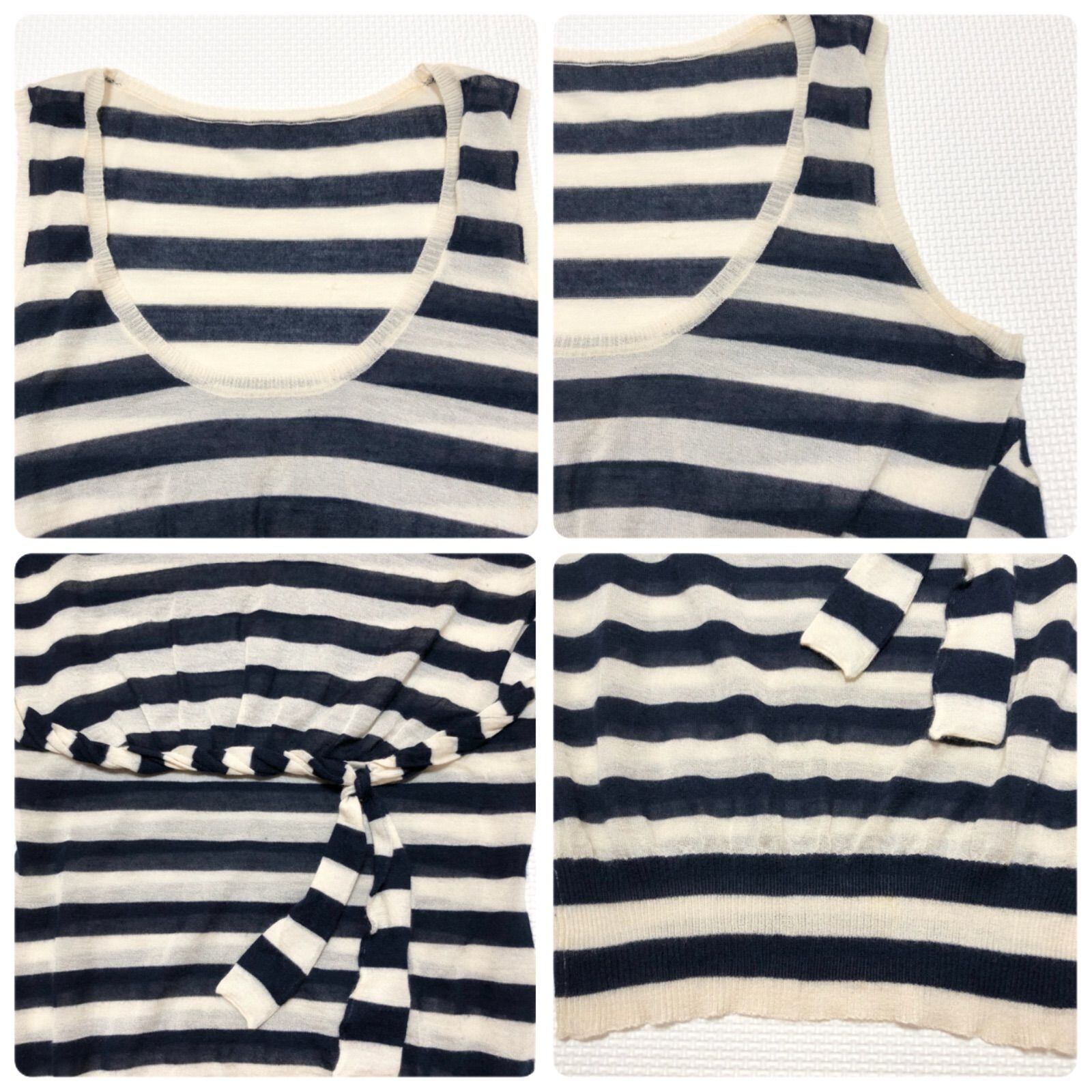 LOUIS VUITTON ルイヴィトン カシミヤ×シルク サマーニット ノースリーブトップス ウエストリボン紐 ボーダー sizeL イタリア製 タグあり アイボリー×ネイビー レディース