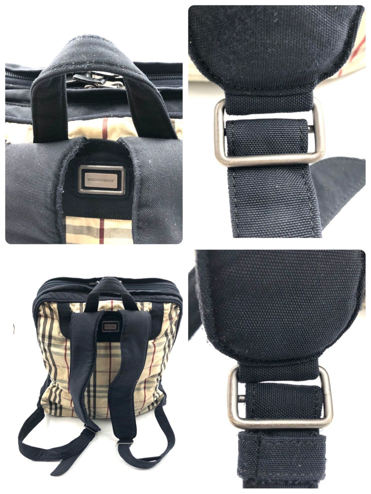 BURBERRY バーバリー ノバチェック リュックサック バックパック キャンバス ベージュ×ブラック シルバー金具