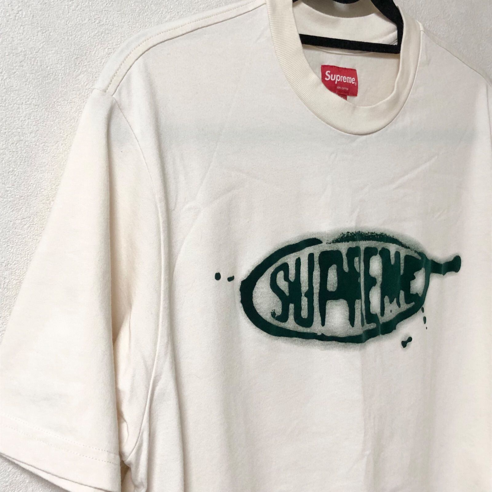 ■美品■Supreme シュプリーム Tシャツ 半袖 センターロゴプリント sizeS ポルトガル製 メンズ ホワイトベージュ系×ダークグリーン