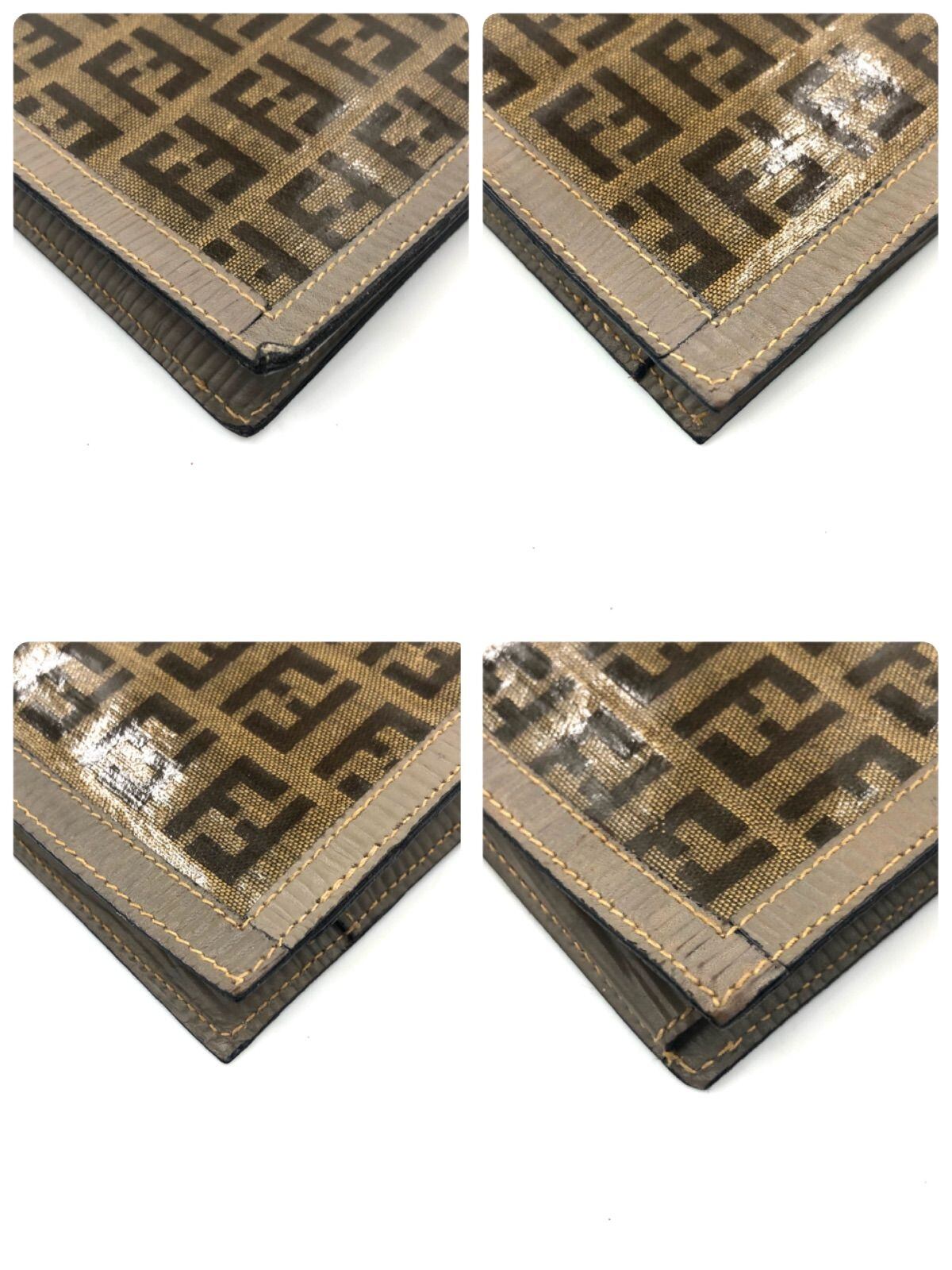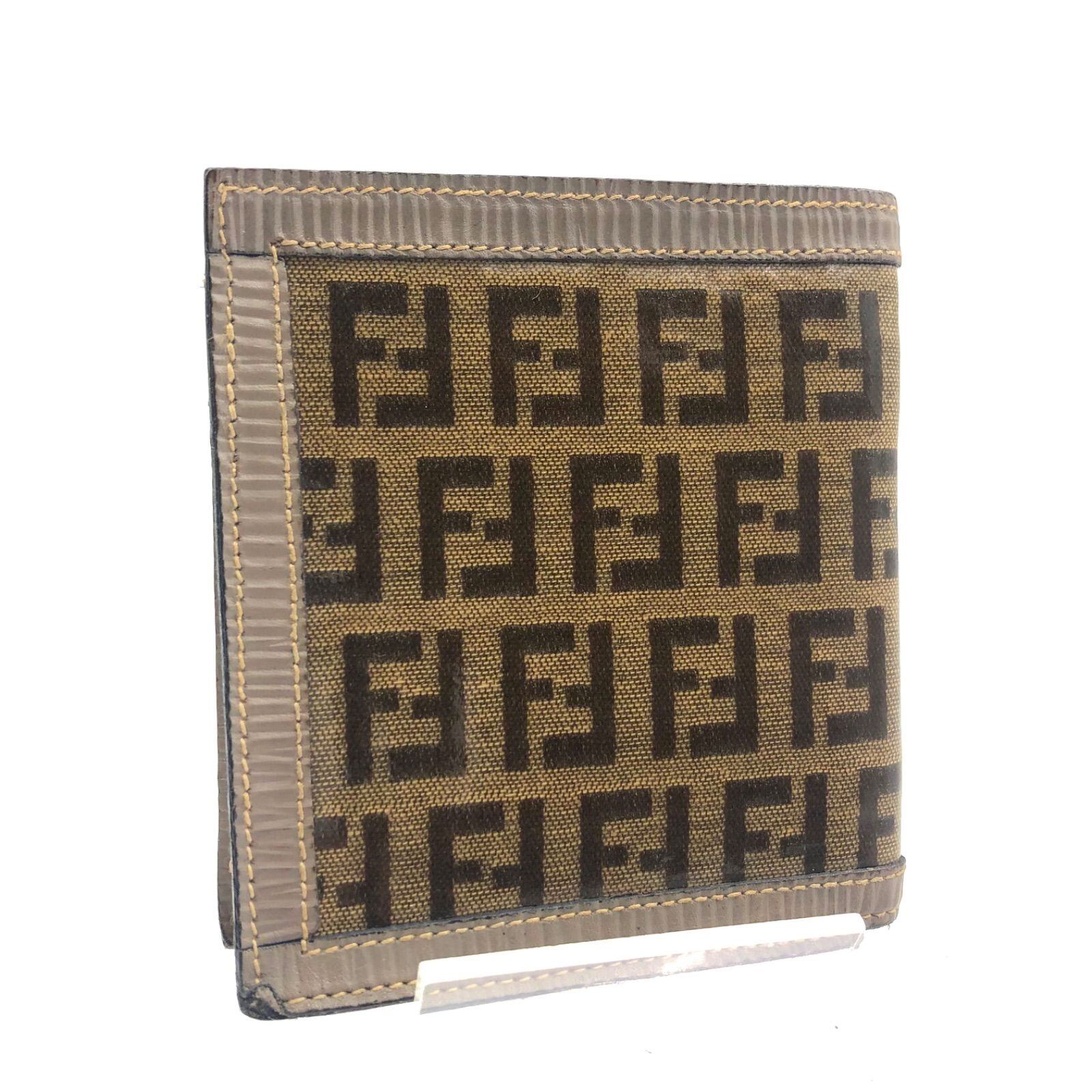 ■美品■希少ヴィンテージ■FENDI フェンディ ズッキーノ 折り財布 札入れ コーティングキャンバス×レザー ベージュ