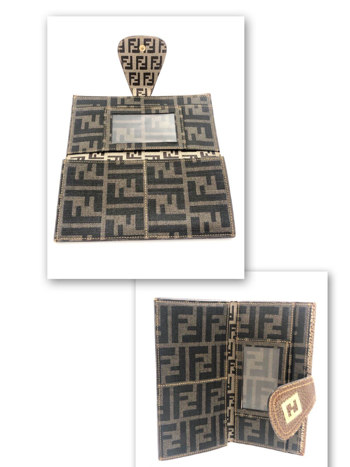 FENDI フェンディ FF金具×内張りズッカ 二つ折り長財布 札入れ パスケース レザー×キャンバス ゴールド×ブラウン ゴールド金具 タグあり 刻印あり レディース