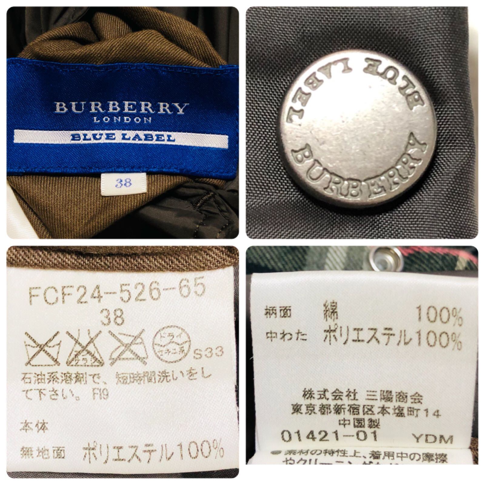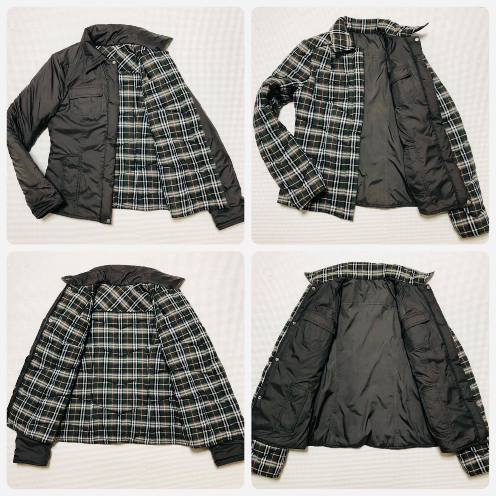 ■極美品■BURBERRY BLUE LABEL バーバリーブルーレーベル 2way リバーシブル 中綿ジャケット チャコール系×ブルーレーベルチェック size38(M相当) 三陽商会 レディース