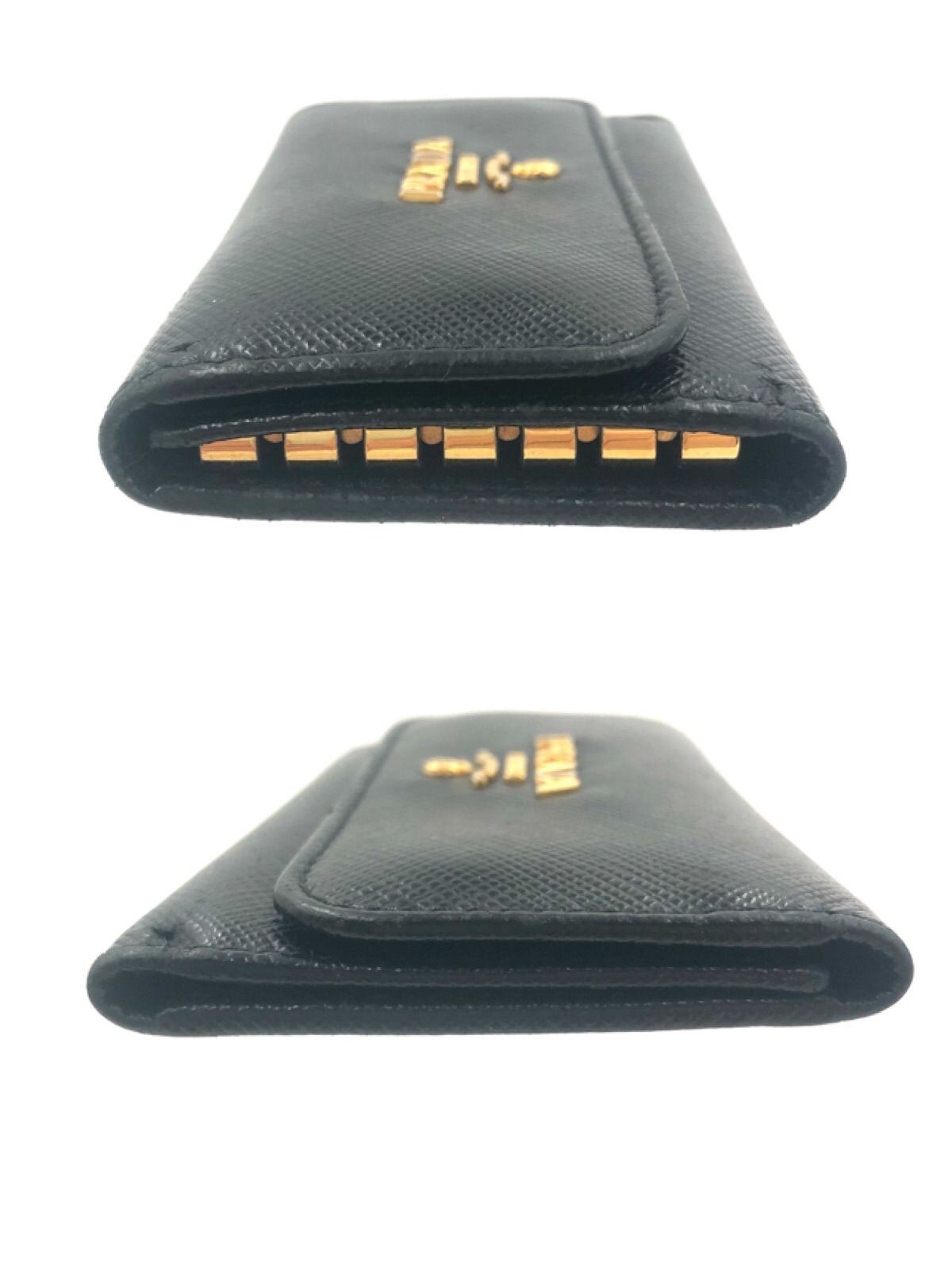 ■美品■PRADA プラダ サフィアーノレザー 6連キーケース ロゴ金具 ブラック ゴールド金具 刻印あり