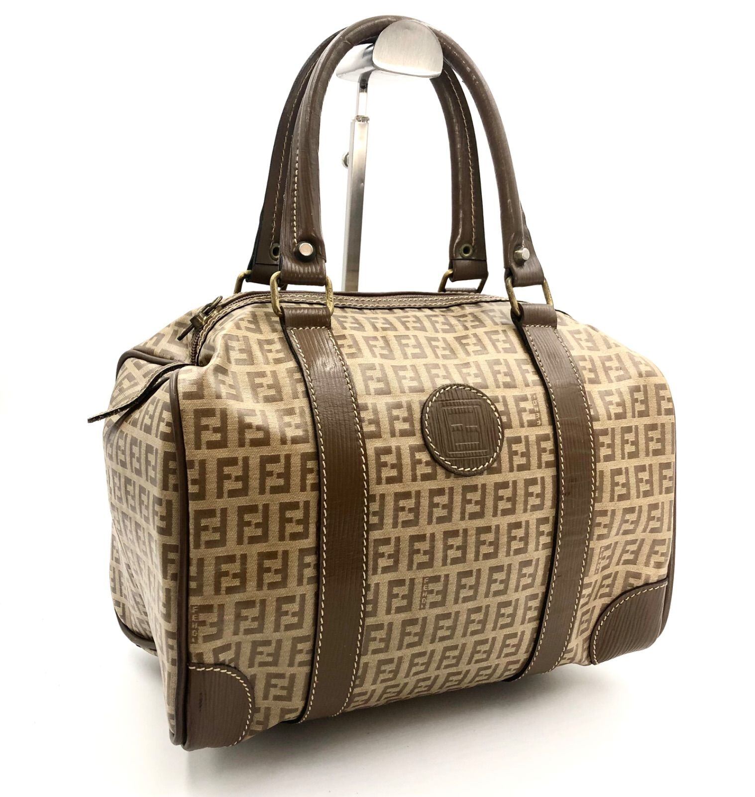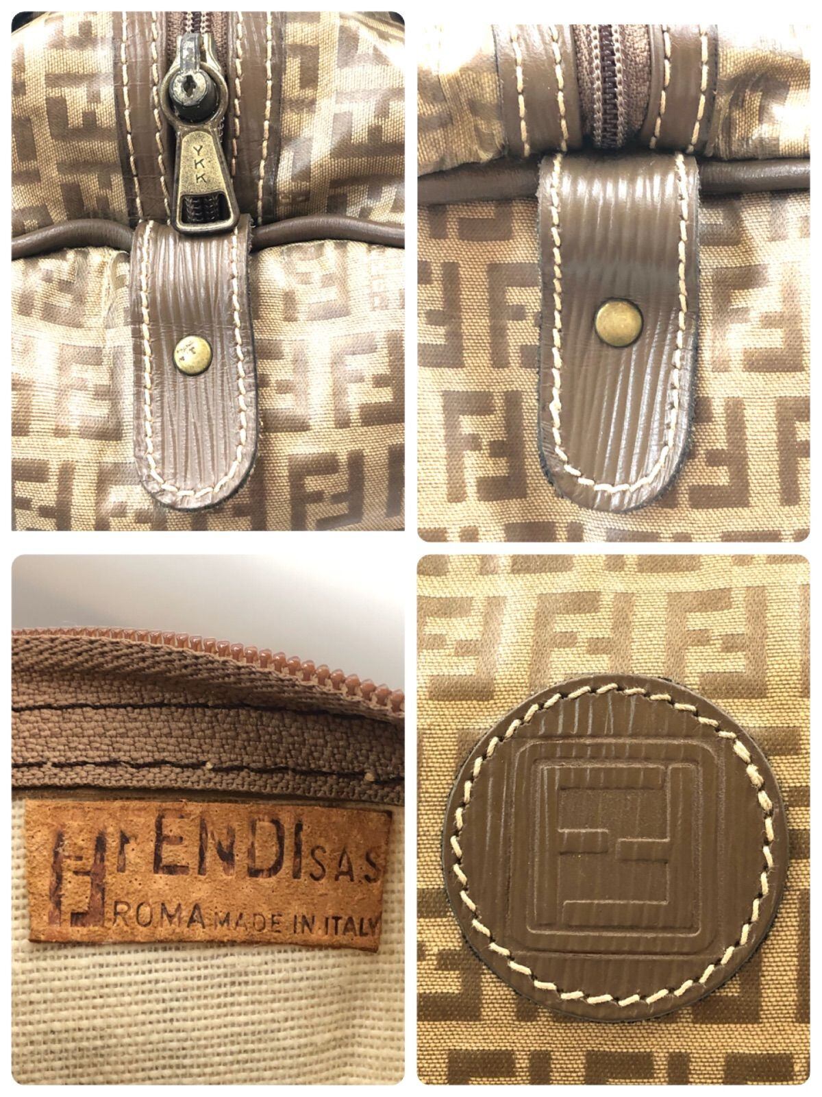 ■美品■希少オールドフェンディ■FENDI フェンディ ズッキーノ総柄 ミニボストンバッグ ハンドバッグ コーティングキャンバス×レザー ベージュ×ブラウン ロゴプレート イタリア製 タグあり