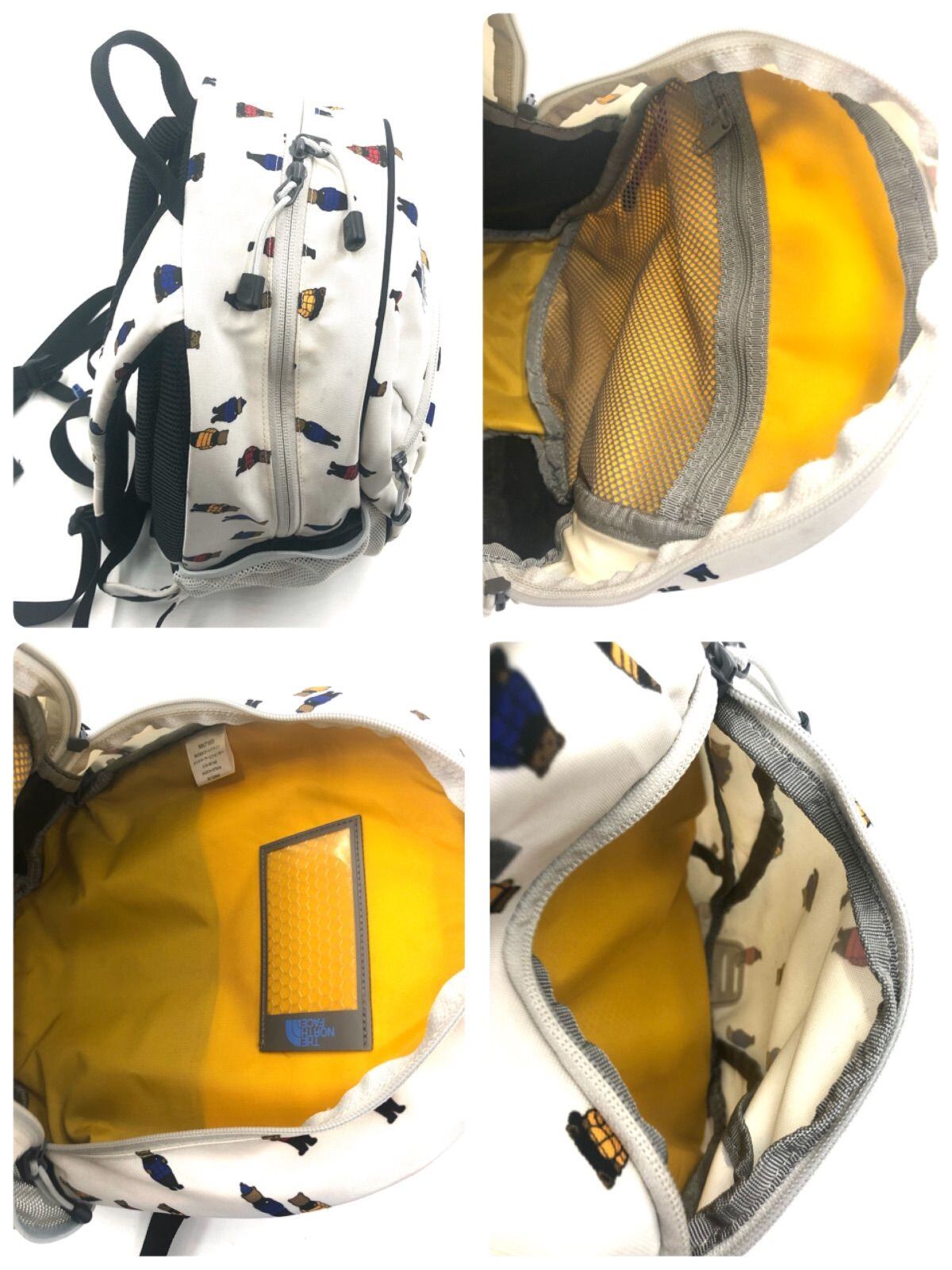 Takashi様専用■極美品■THE NORTHFACE ノースフェイス ホームスライス リュックサック バックパック デイパック キッズ 子供用 ダウンを着たクマ 総柄 ナイロン、ポリウレタン ホワイト×ブラック他 ゴールドウィン製