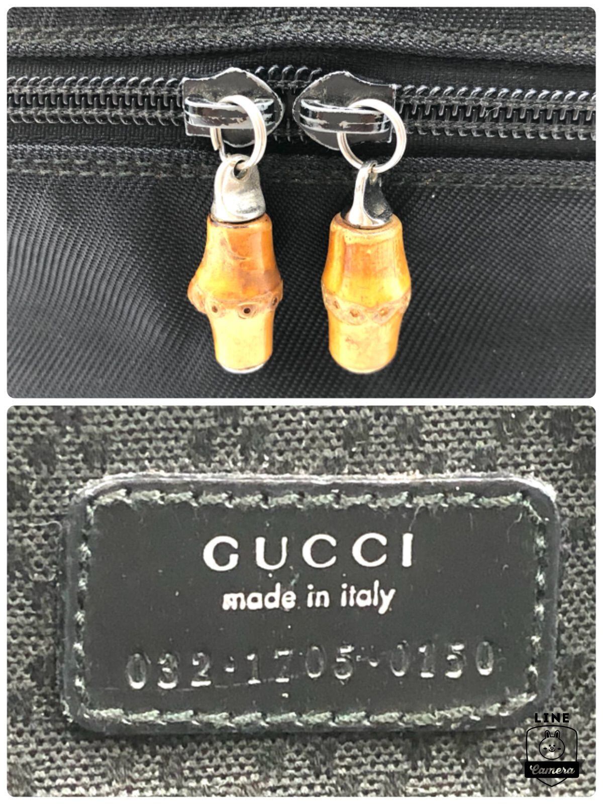 ■極美品■GUCCI グッチ バンブー バニティバッグ ブラック×内張りディアマンテ総柄 シルバー金具 ナイロン×レザー イタリア製 刻印あり 032・1705・0150 レディース