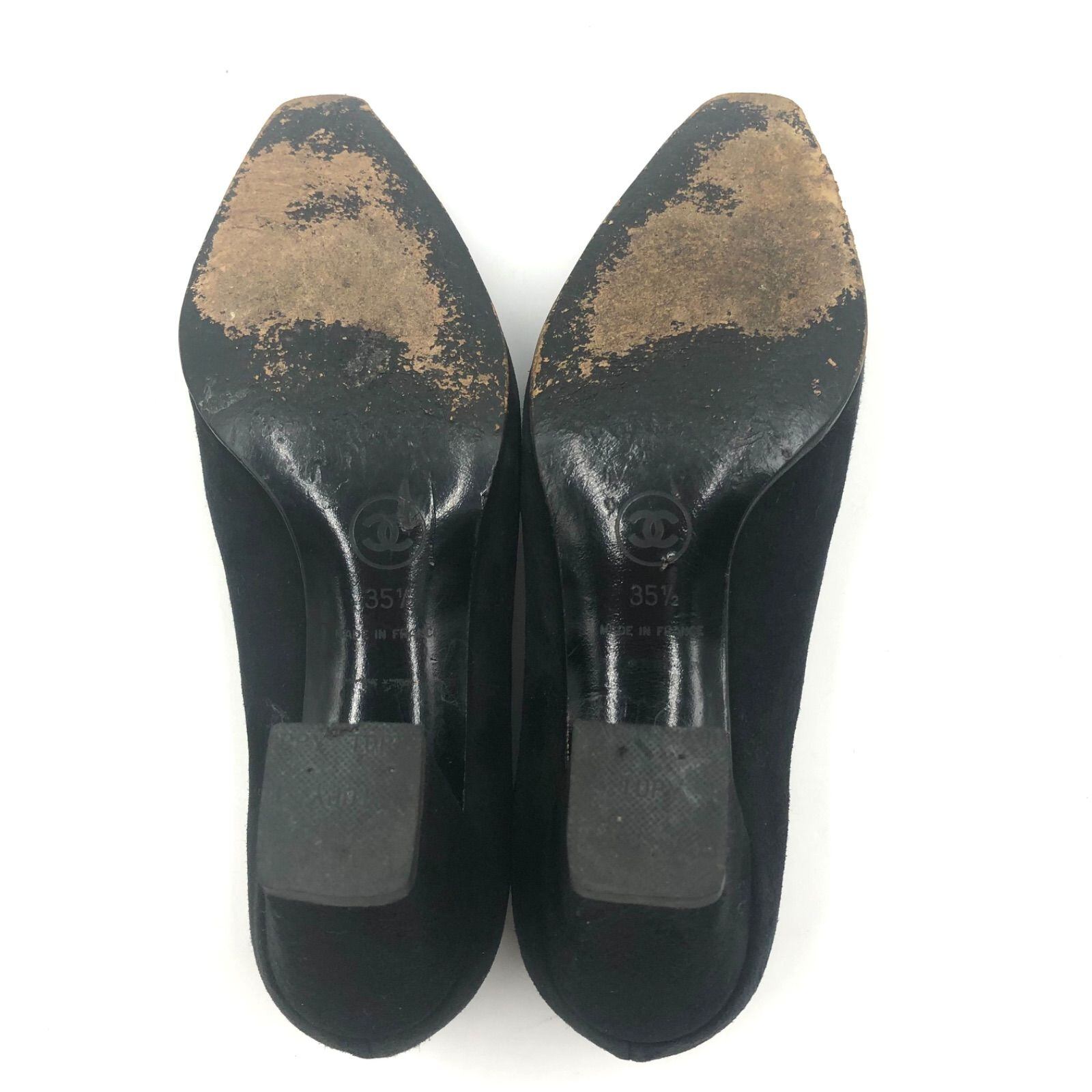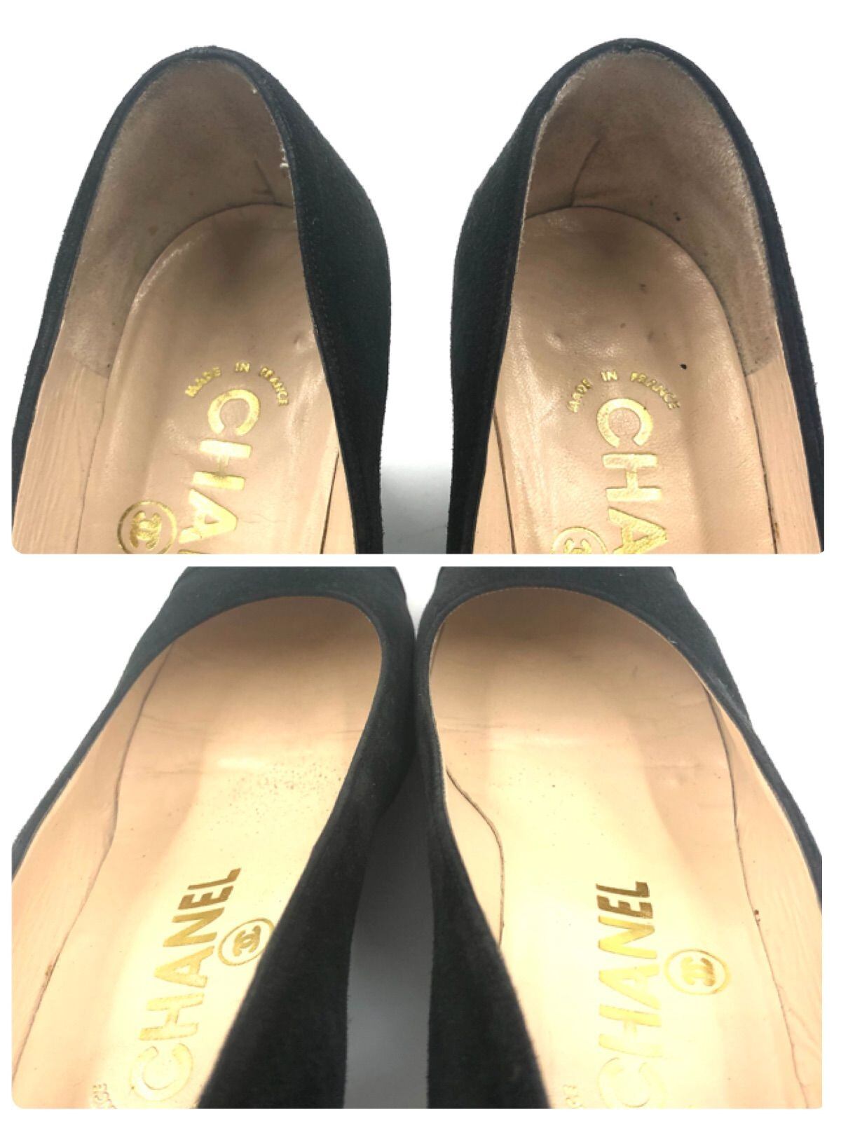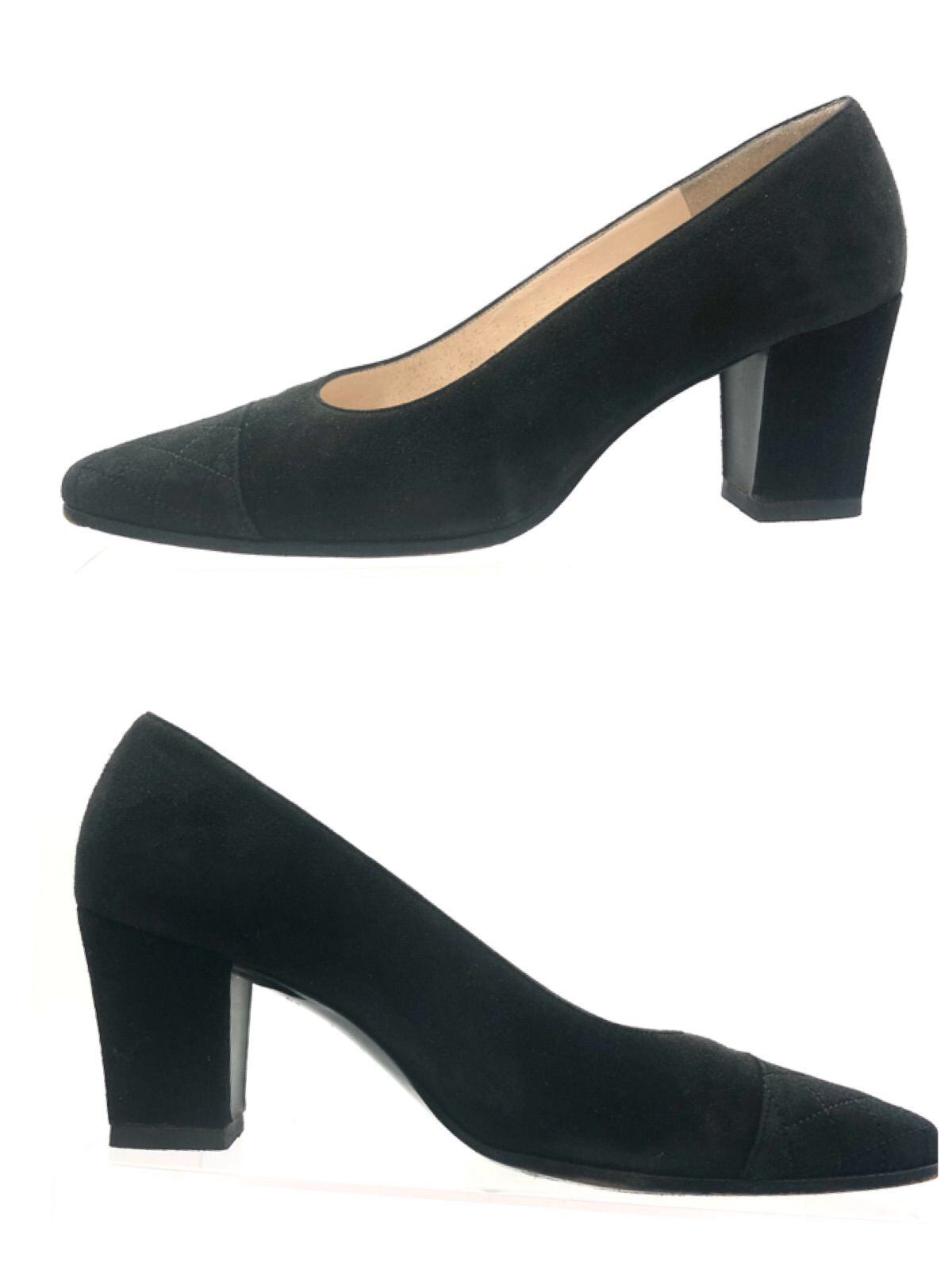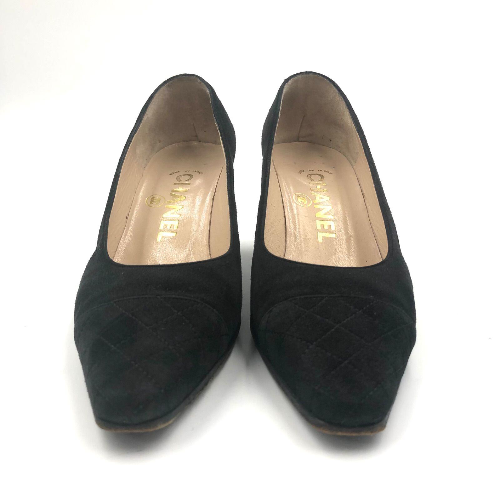 ■良品■CHANEL シャネル マトラッセキルティング パンプス 太ヒール スエードレザー ブラック サイズ35.5(日本サイズ22.5cm) レディース ポインテッドトゥ フランス製