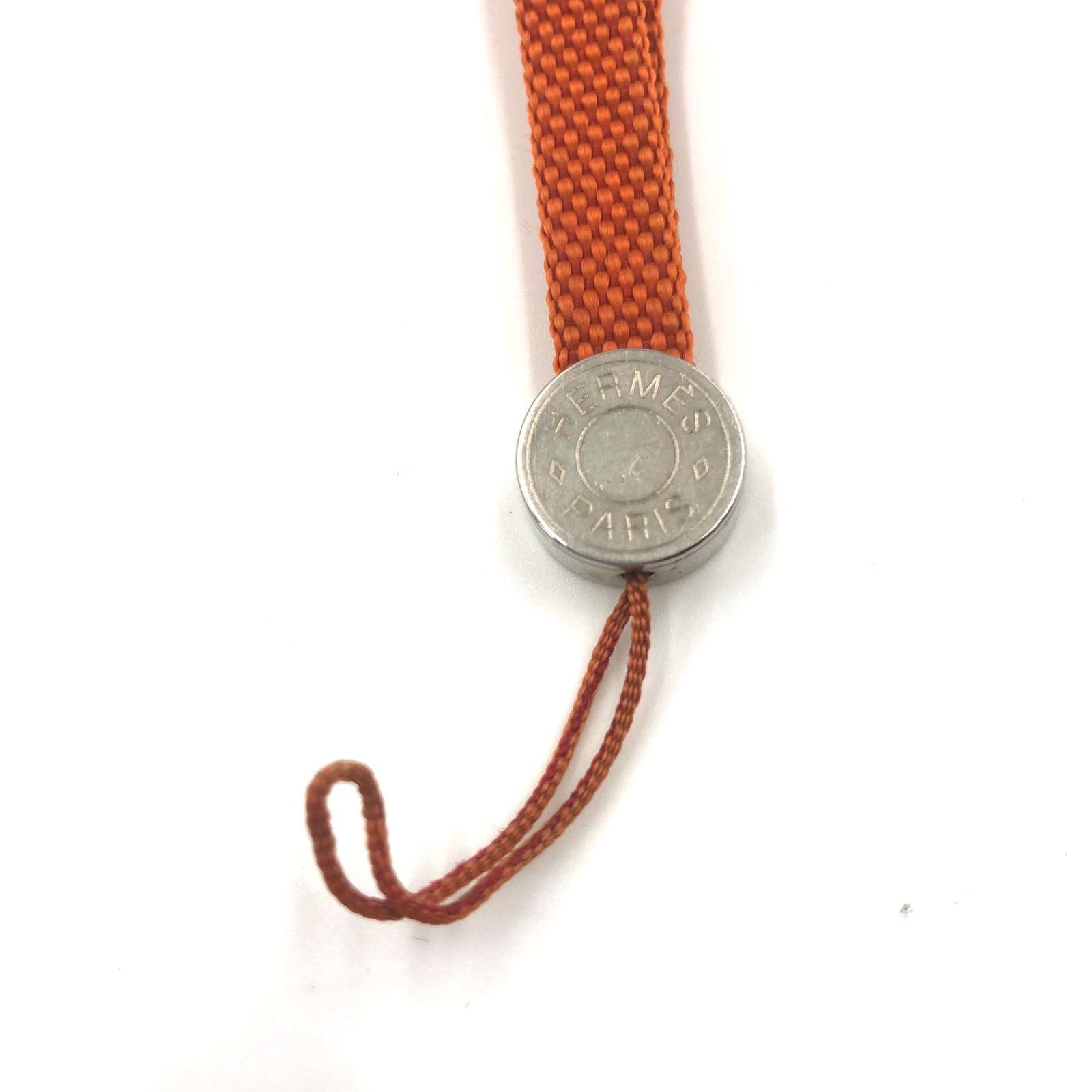 ■良品■HERMES エルメス セリエ 携帯ストラップ キャンバス オレンジ シルバー金具 セリエ金具