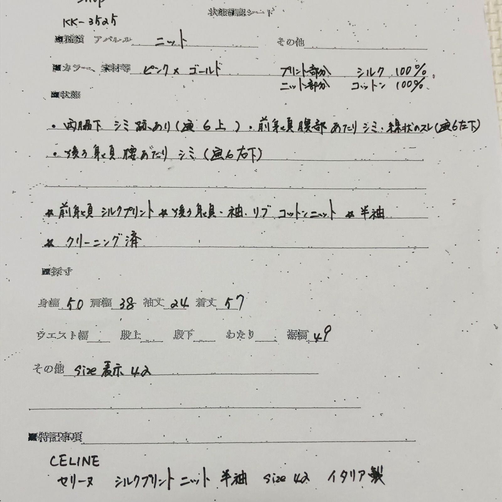素人採寸のため誤差はご容赦ください