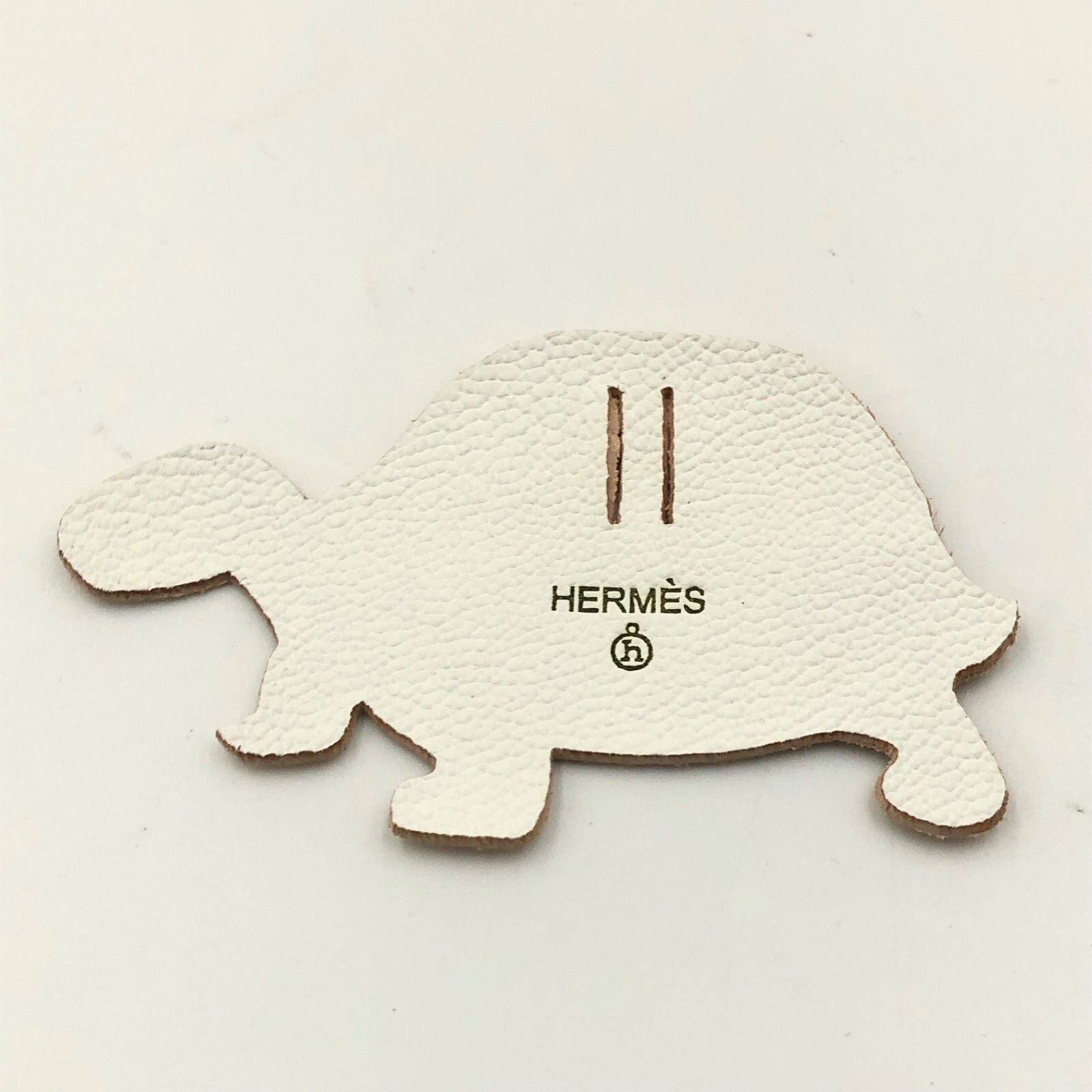 ■表面美品■HERMES エルメス プティアッシュ チャーム アクセサリー 亀 タートル レザー 本革 アイボリー