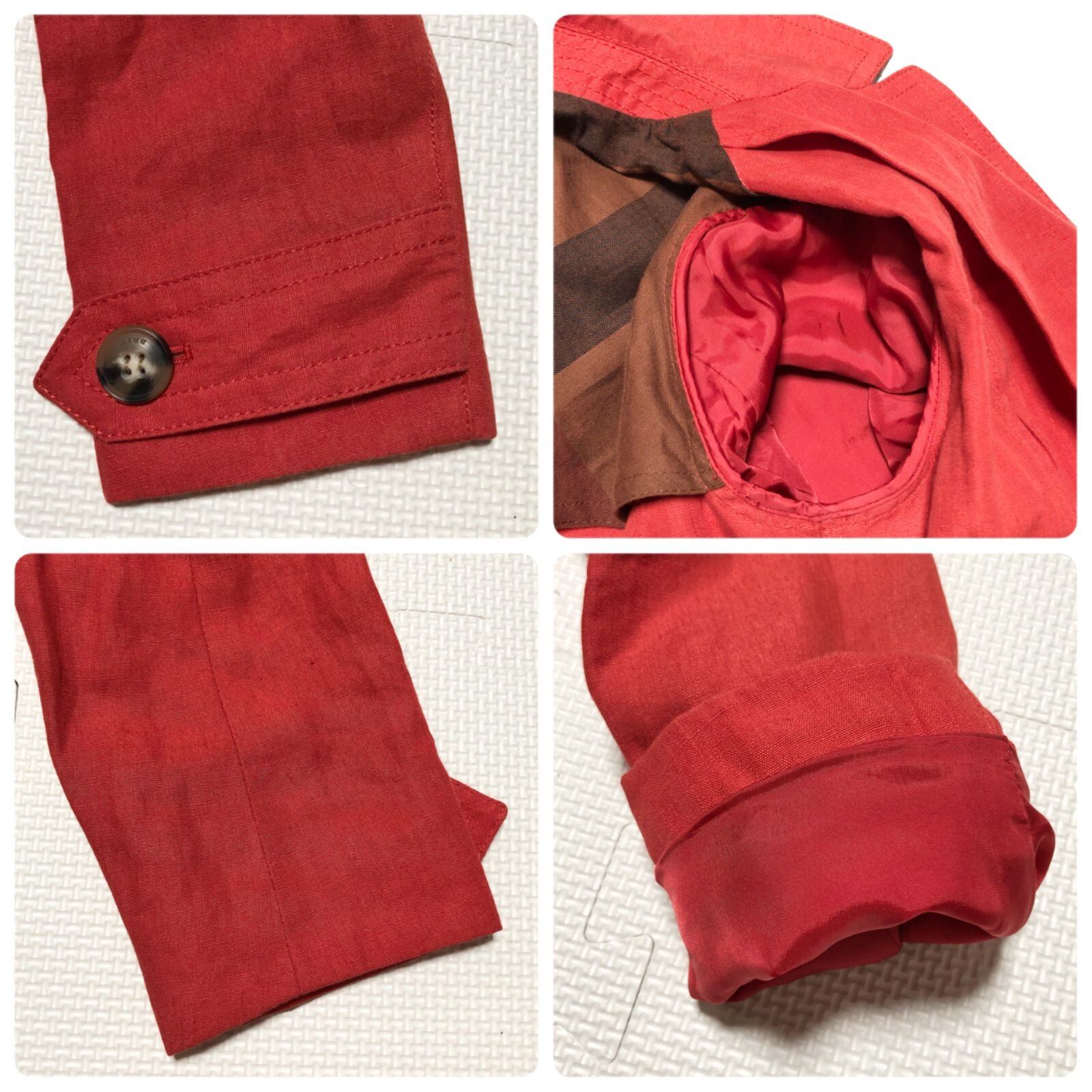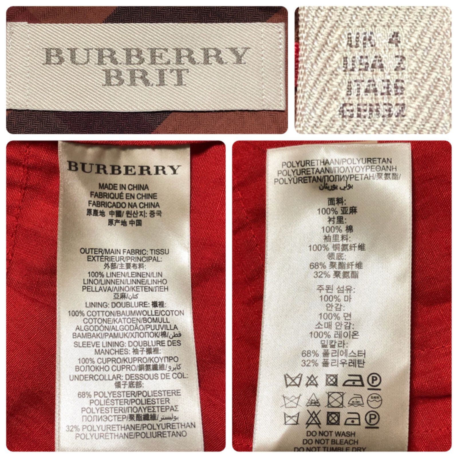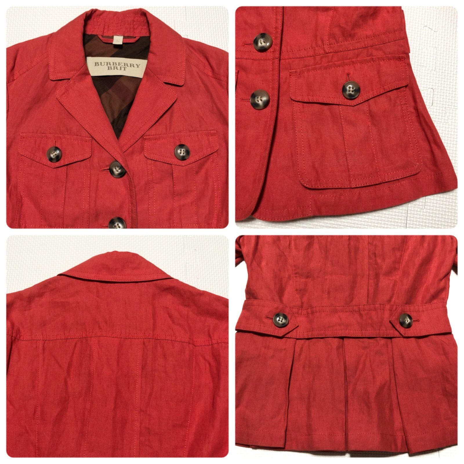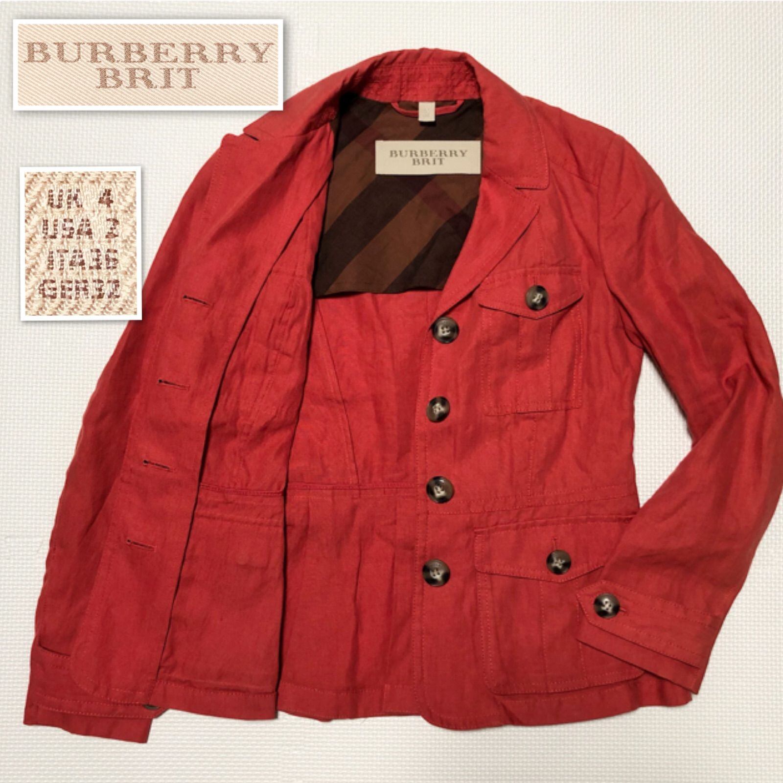 ■極美品■超希少■BURBERRY BRIT バーバリーブリット リネンジャケット size36(サイズS程度) カジュアル シングル4つボタン ロゴ水牛ボタン 後ろベルト 裾ボックスプリーツ レディース