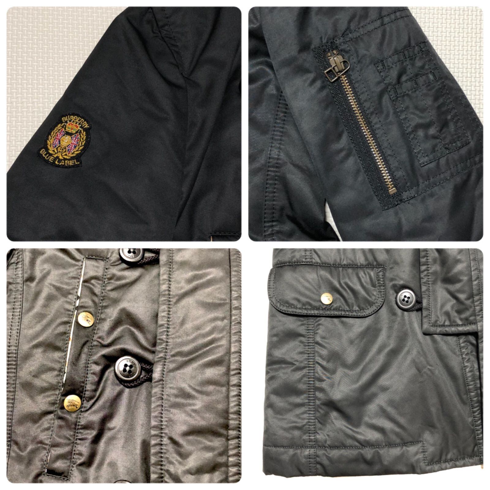 ■美品■希少■BURBERRY BLUE LABEL バーバリーブルーレーベル N-3B フライトジャケット ミリタリーコート ロゴワッペン 中綿 size38(サイズM相当) ブラック×裏地総ノバチェック 三陽商会 ロゴボタン+金ボタン レディース