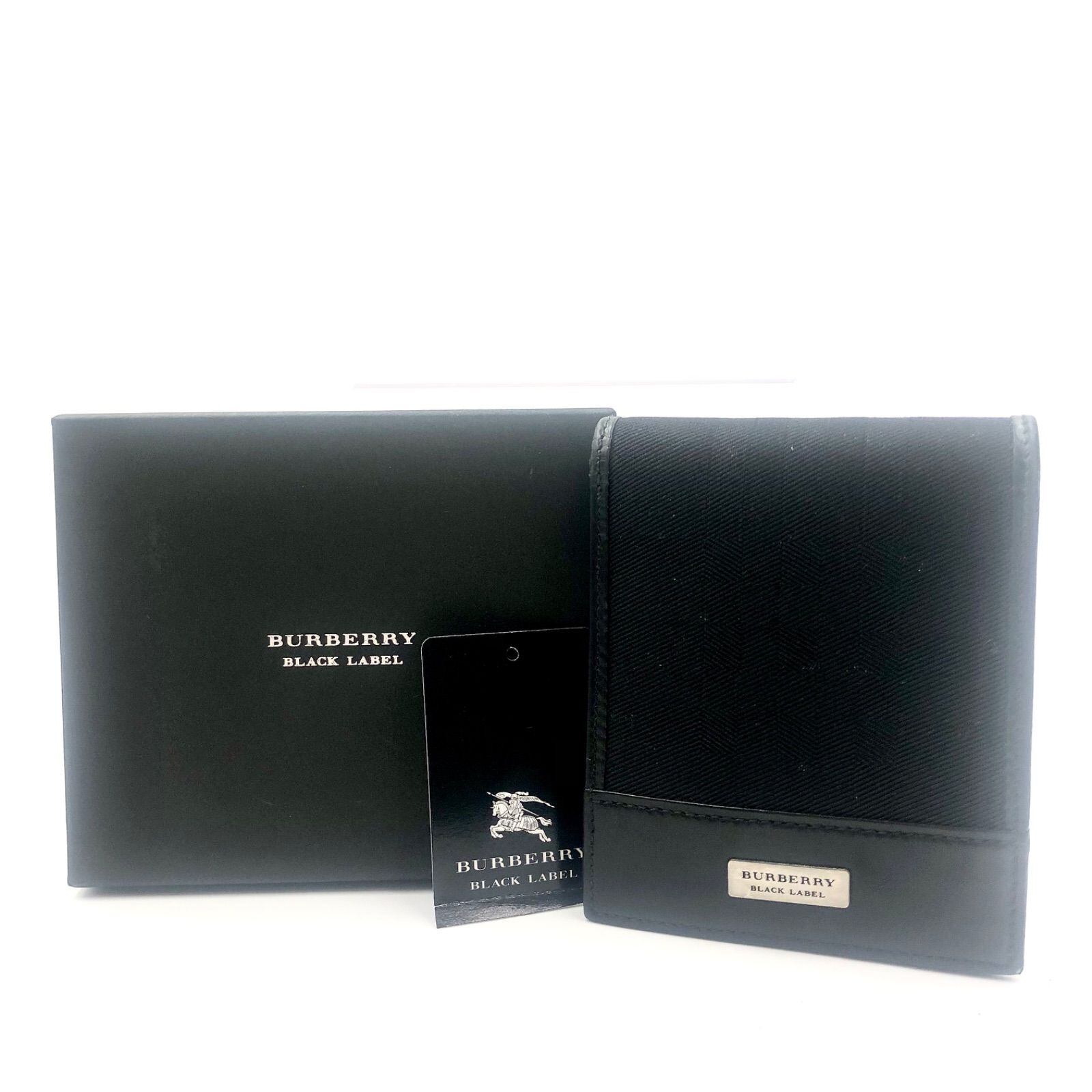 ■美品■BURBERRY BLACK LABEL バーバリーブラックレーベル ロゴプレート 二つ折り財布 キャンバス×レザー ブラック 三陽商会 メンズ 箱付き 紙タグ付き
