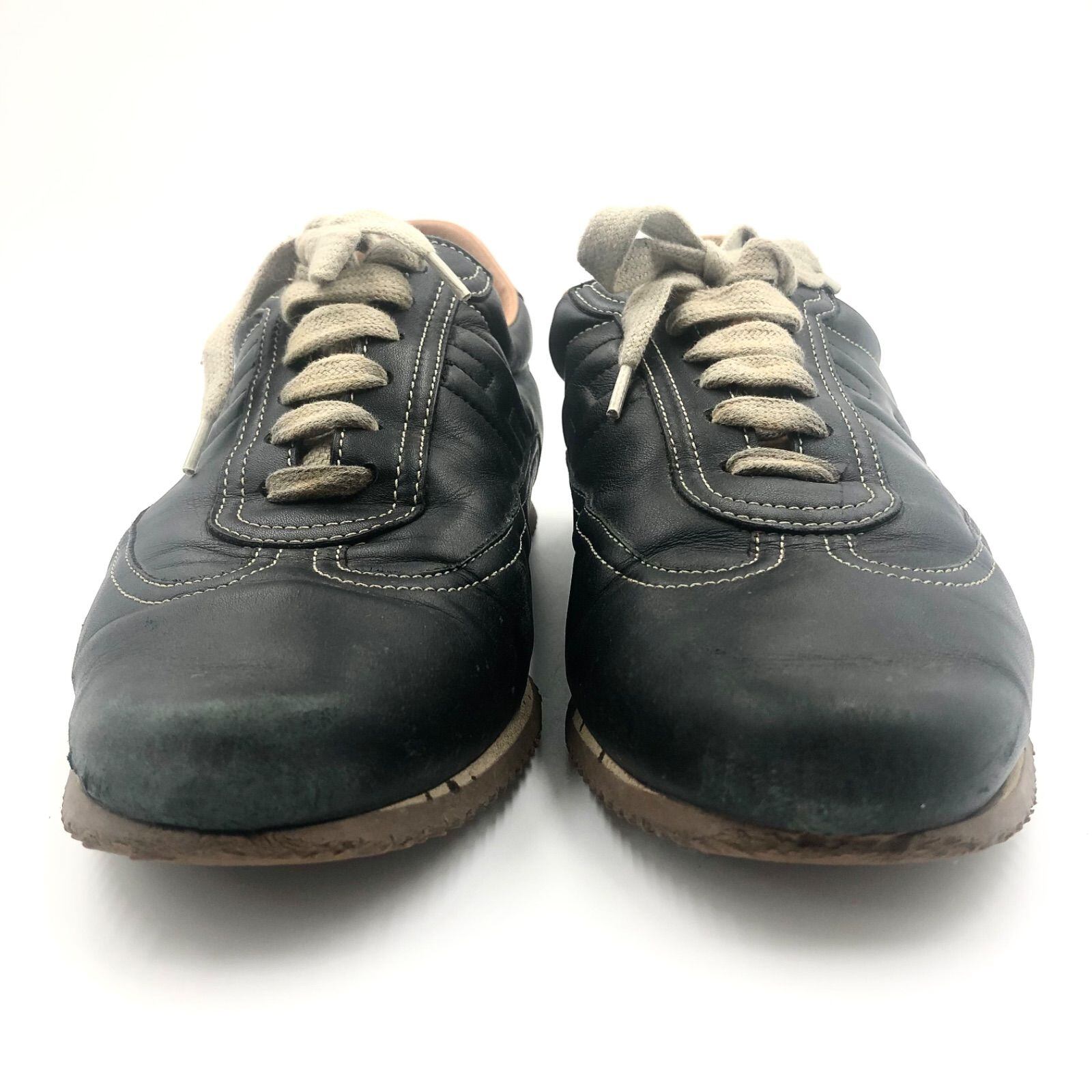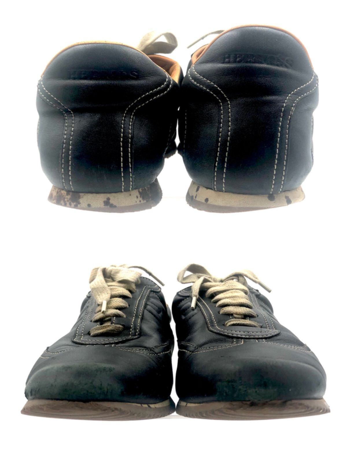 HERMES エルメス クイック Hロゴステッチ レザースニーカー 本革 ブラック イタリア製 サイズ38.5(24.5cm相当) レディース 保存袋付き