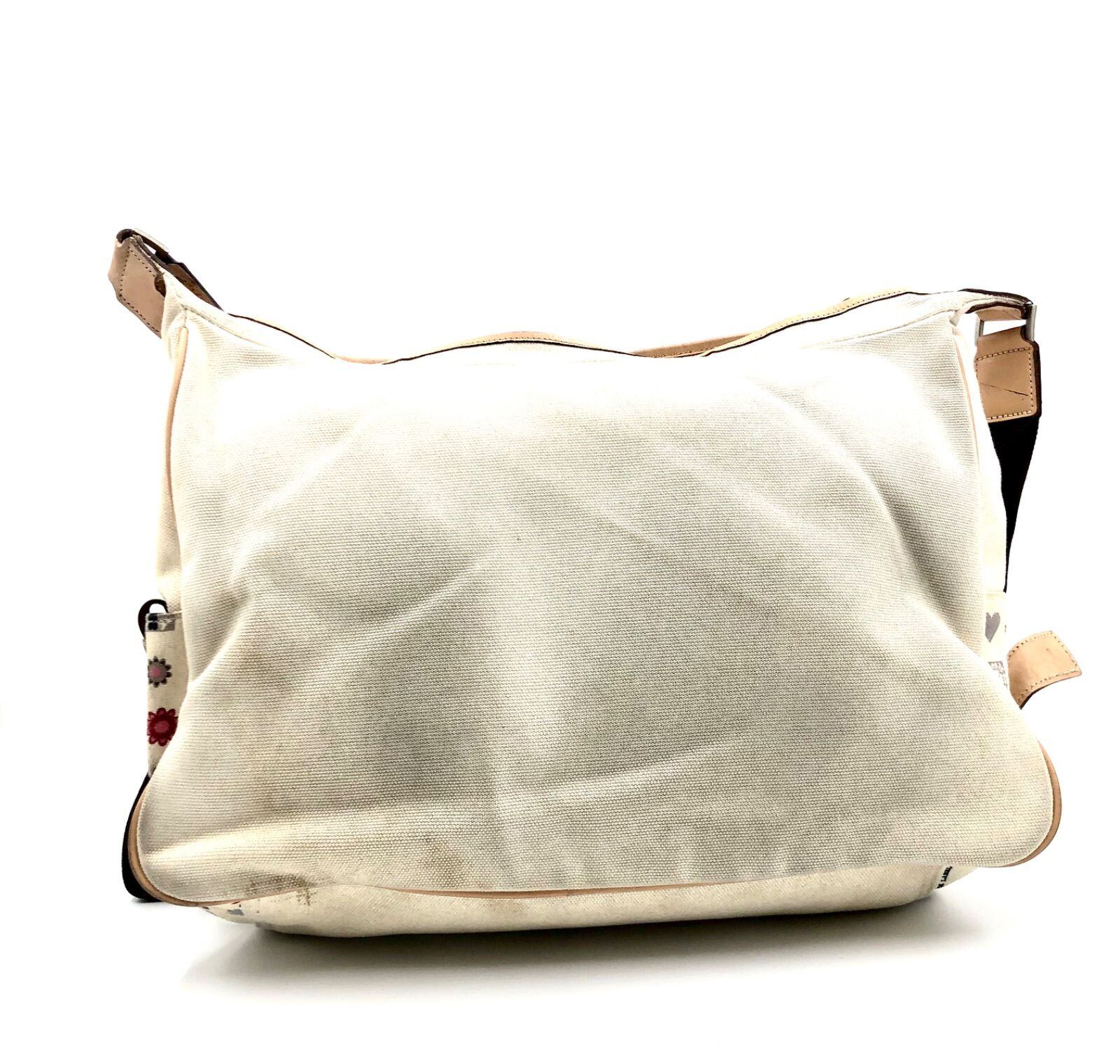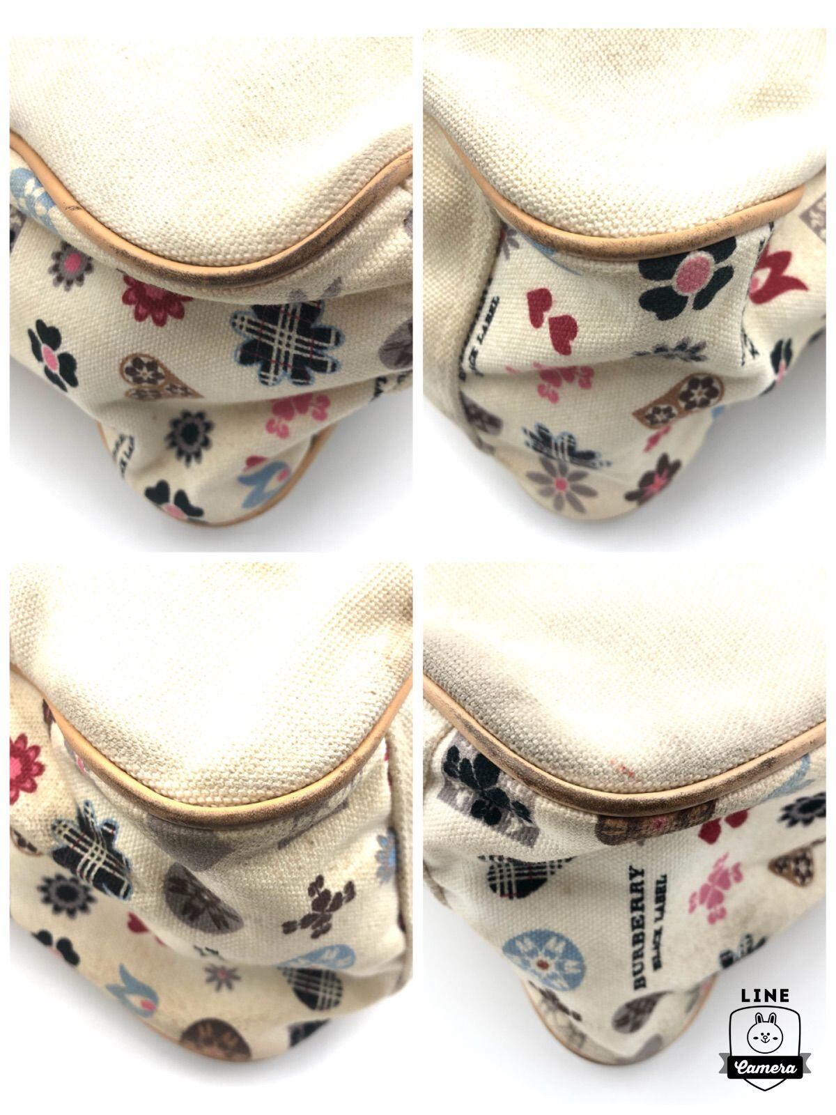 BURBERRY BLACK LABEL バーバリーブラックレーベル ショルダーバック 斜めがけ クロスボディ キャンバス ロゴプレート ホワイト系×シルバー金具 側面アイコン柄